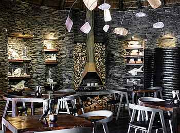 Gebucht wird auf Basis von Vollpension mit Frühstück, Mittag- und Abendessen sowie Nachmittagstee. Inklusive sind alle Getränke außer französischer Champagner. Die Gerichte sind à la carte und mit einer Buffet-Auswahl. Gespeist wird gemeinschaftlich im Restaurant des Hauptgebäudes. Auf Wunsch können private Mahlzeiten in der eigenen Suite oder im Busch organisiert werden. Die Küche ist international und regional mit Produkten des eigenen Gartens.