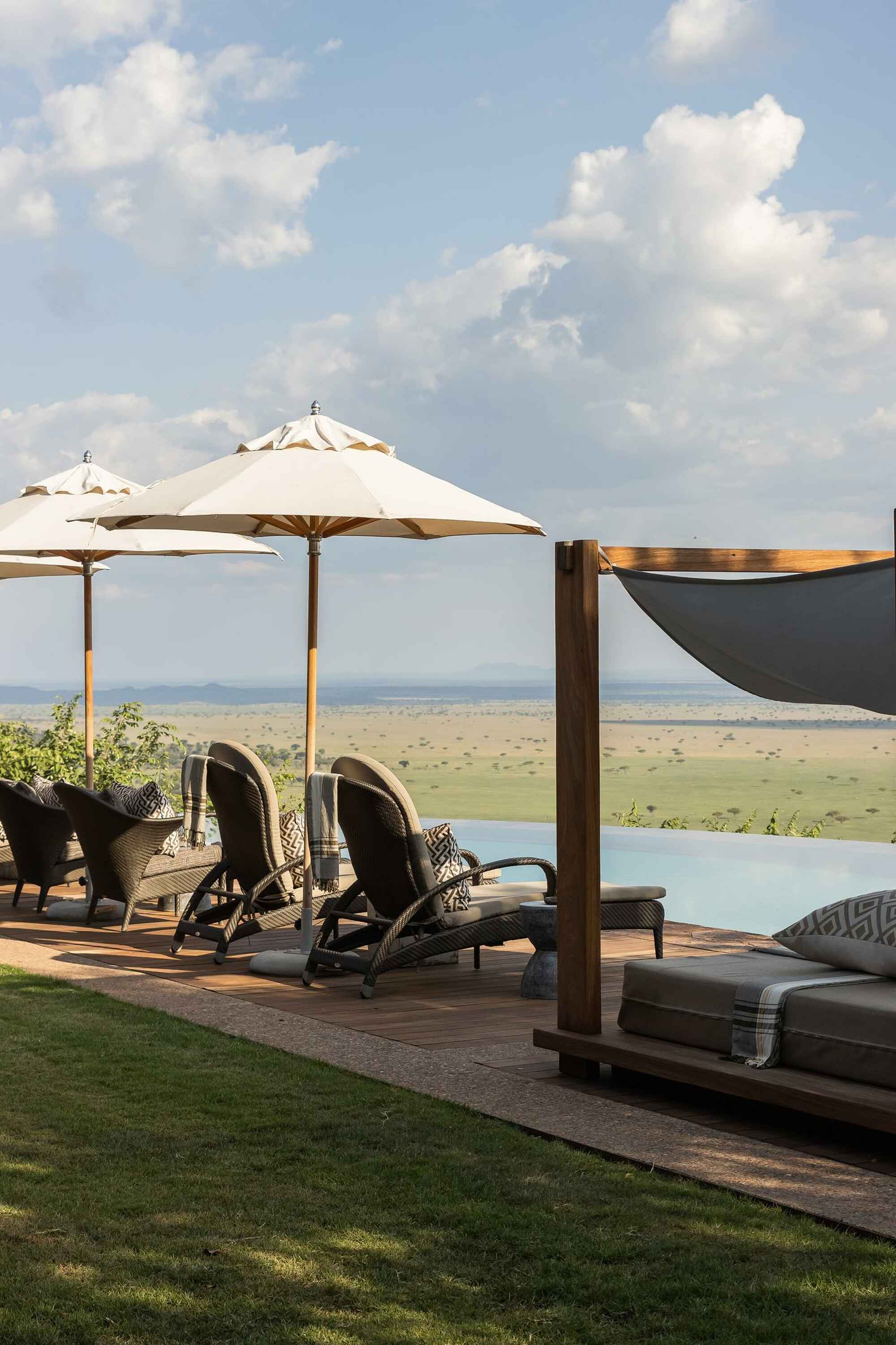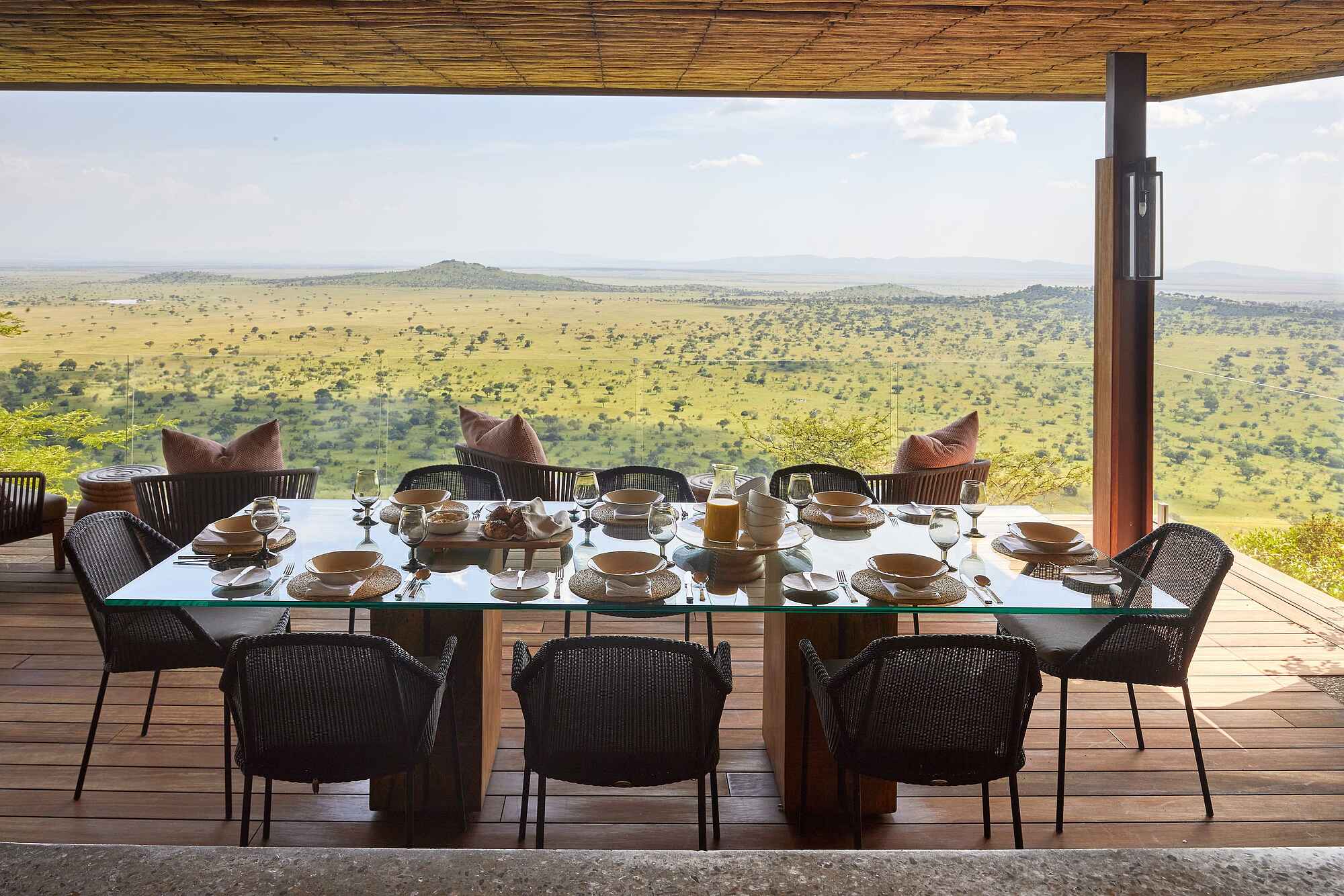 Die Singita Kilima Villa liegt in Tansania, hoch oben im privaten Grumeti-Reservat an der Grenze zur Serengeti. Der Blick reicht bis zum Horizont und die Weite ist beeindruckend. Die Villa ist ausschließlich exklusiv buchbar und bietet alles, was ein erstklassiger Rückzugsort braucht: fünf elegante Suiten, einen großen Infinity-Pool mit Aussicht, ein privates Kino, einen Fitnessbereich und einen Spa-Behandlungsraum. Ein engagiertes Team kümmert sich um jedes Detail, vom persönlichen Guide bis zum privaten Koch. Wer Safari ohne Kompromisse erleben möchte, ist hier genau richtig. Das Ambiente ist stilvoll, die Stimmung entspannt und das Gefühl von Freiheit allgegenwärtig.