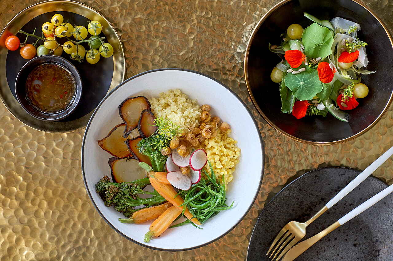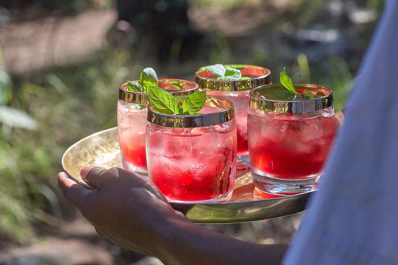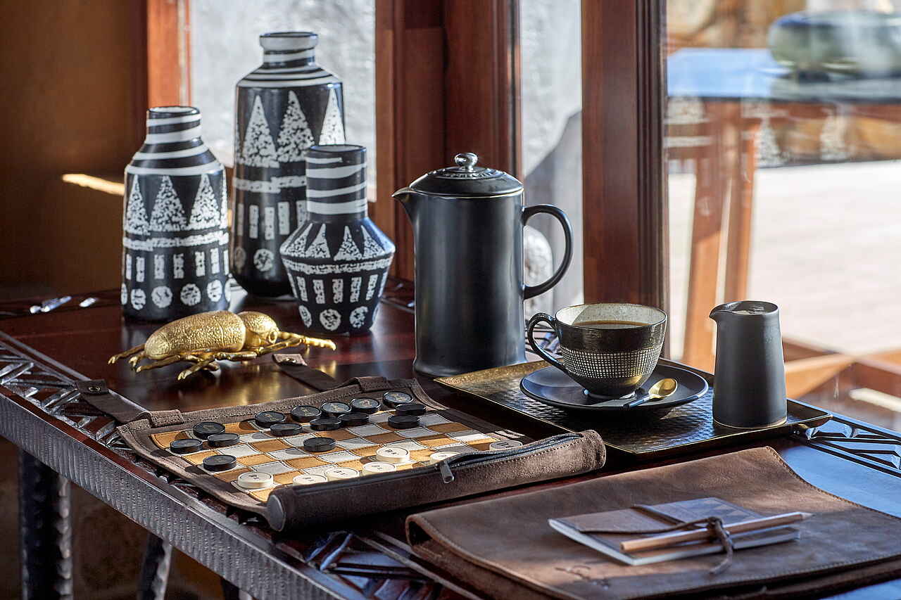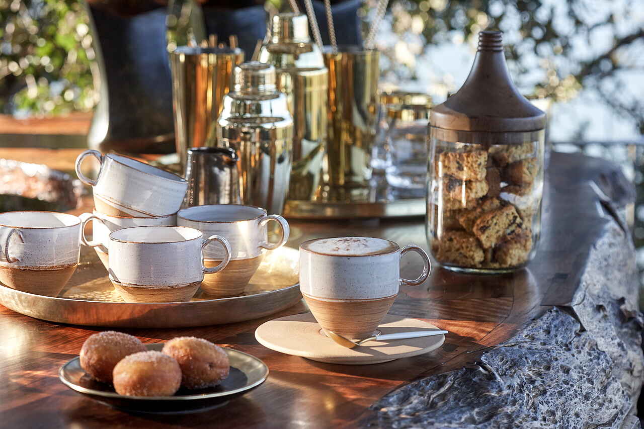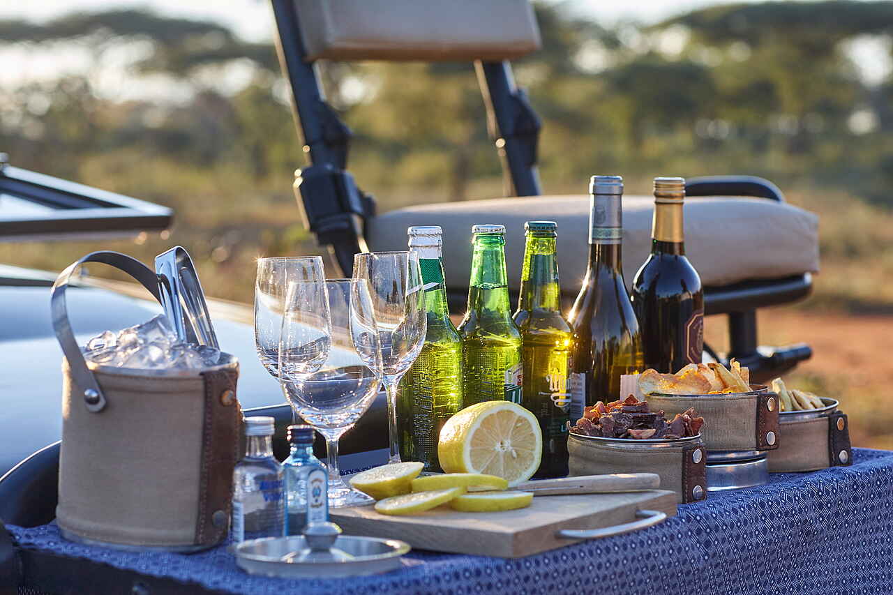 Vollpension. Frühstück, Lunch und Dinner können im Innen- und Außenbereich oder im Busch eingenommen werden. Weine aus dem eigenen Weinkeller, Softdrinks und Spirituosen, mit Ausnahme von Champagner, sind im Preis inbegriffen.