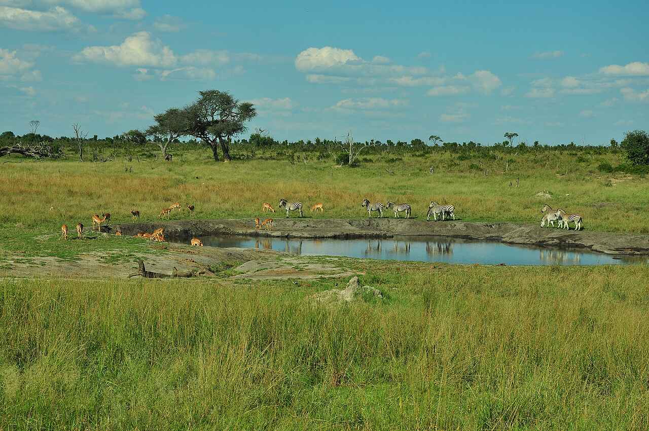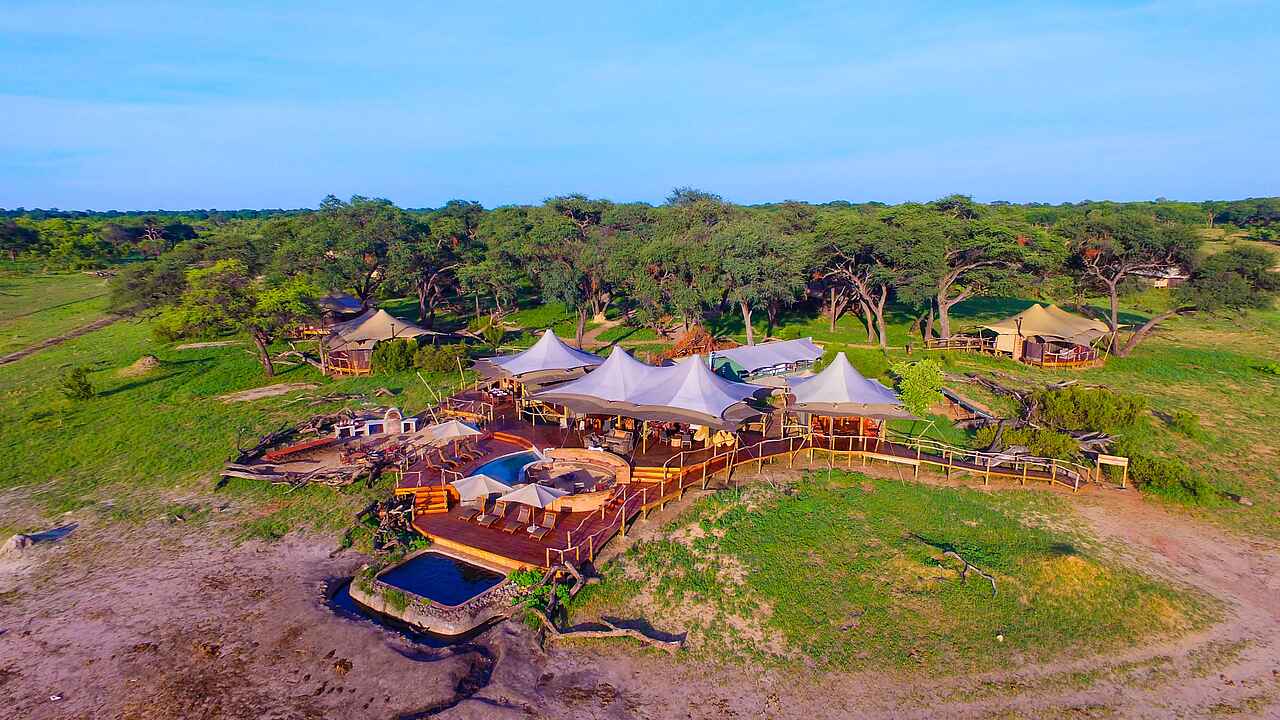 Somalisa Camp liegt inder Nähe von einigen Wasserstellen, die Wildtiere, besonders Elefanten, anlocken. Man kann die Elefantengruppen ungestört beobachten, vor Allem wenn sie direkt aus dem Swimmingpool vor dem Camp trinken, der neuerdings nur noch den Elefanten geöffnet ist.