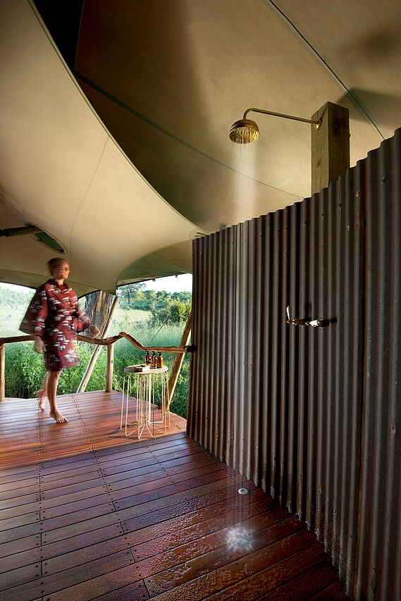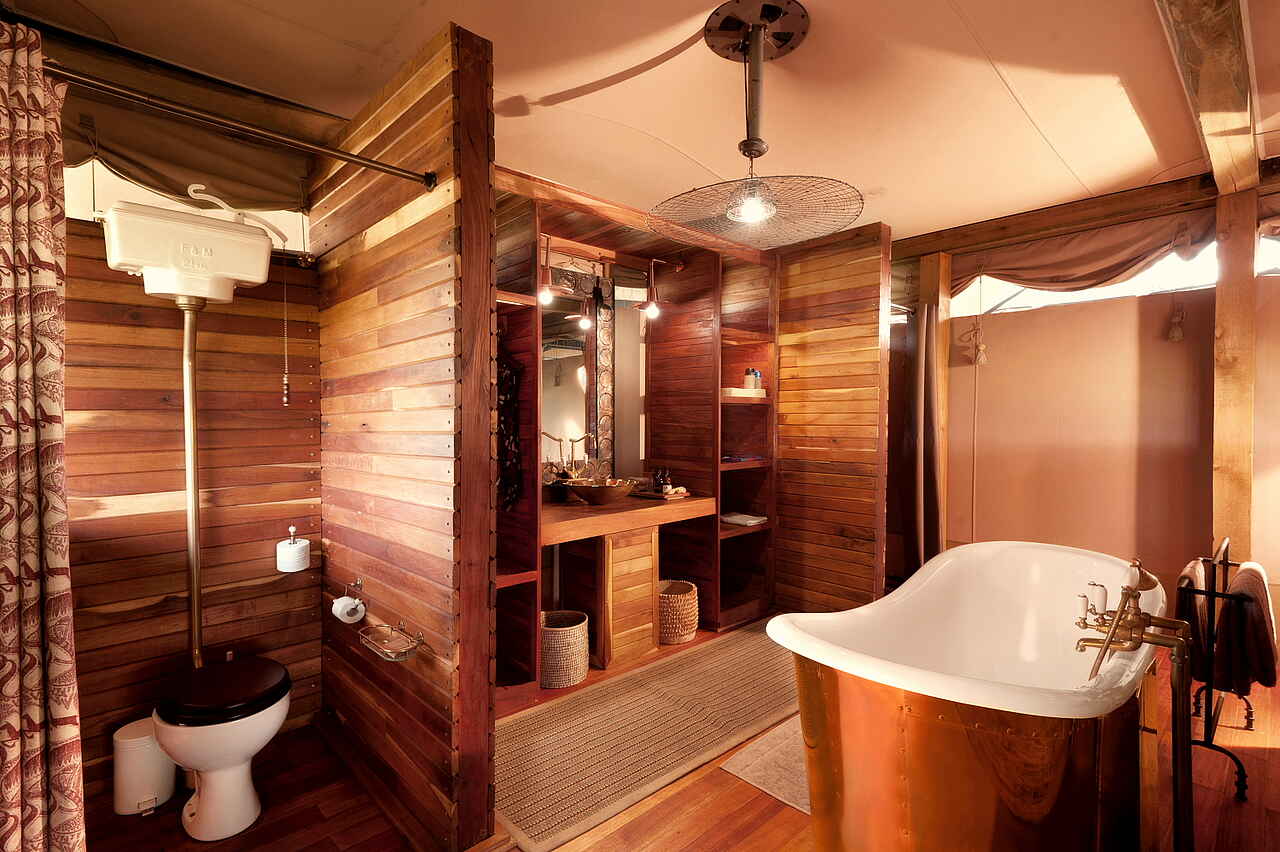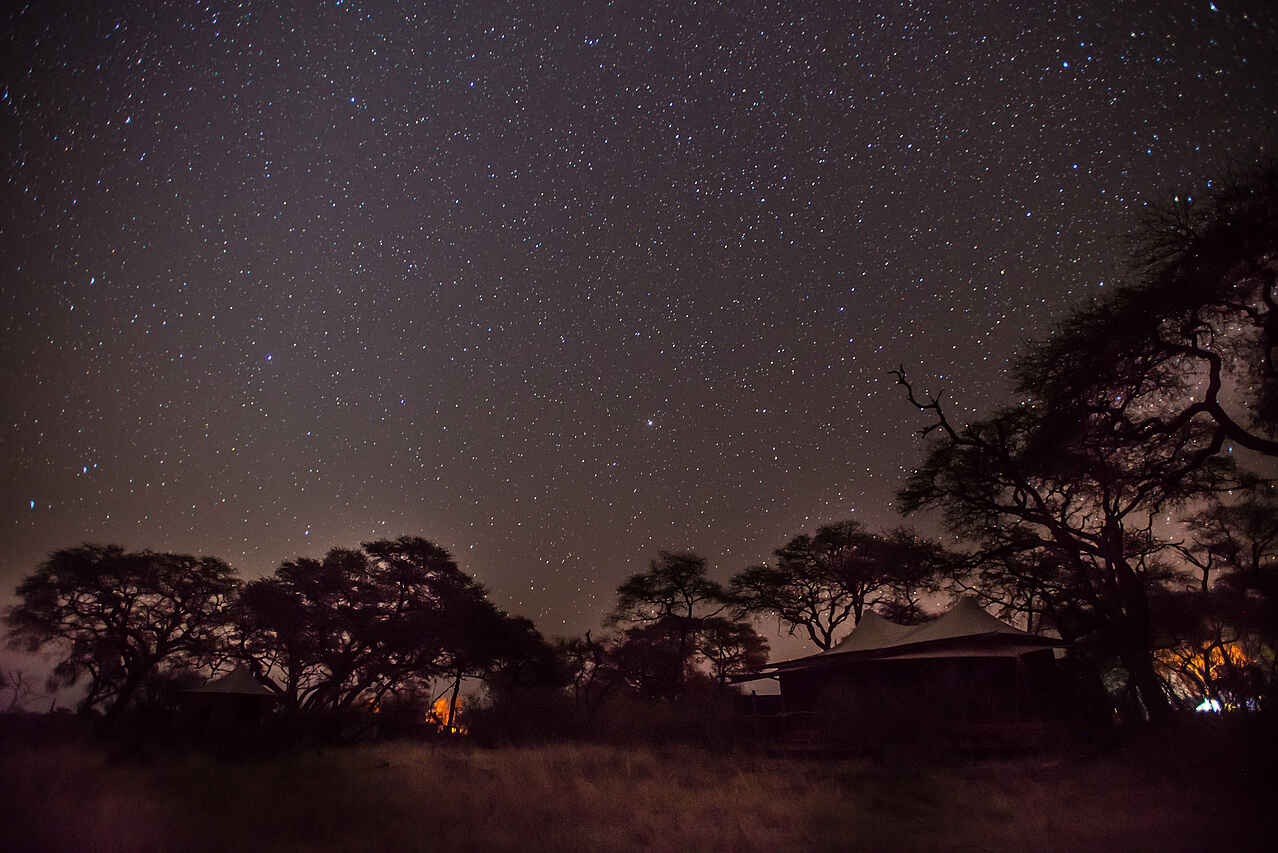 Die 7 Zelte sind auf dem Gelände frei unter alten Akazien verteilt. Eine bequeme Ausstattung rundet die einzelnen Zimmer perfekt ab. Nach Einbruch der Dunkelheit wird das Campgelände mit Petroleumlampen beleuchtet.