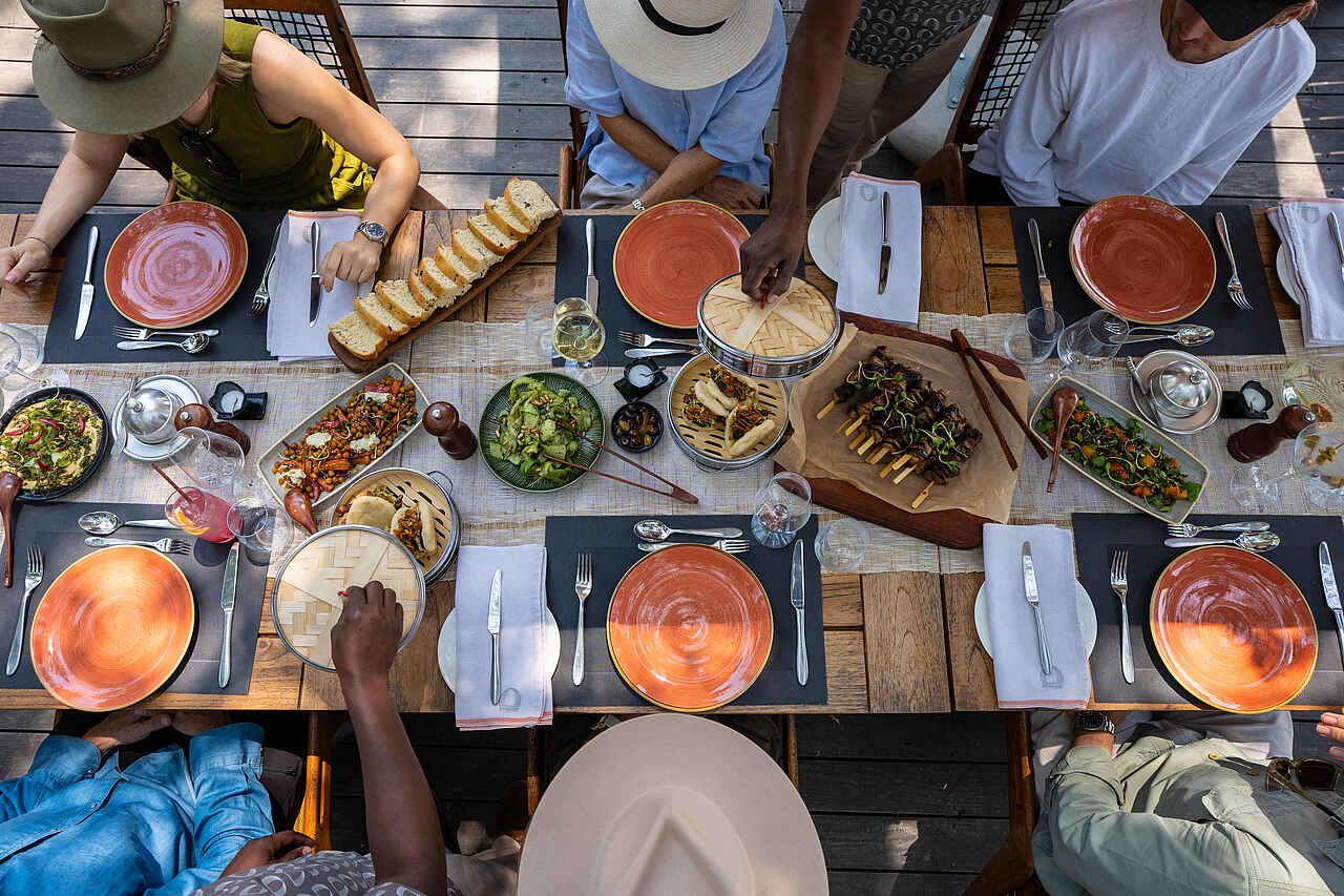 In der Sungani Lodge wird das kulinarische Erlebnis großgeschrieben. Die Mahlzeiten werden im Speisebereich mit Panoramablick auf die umliegende Wildnis serviert. Die abwechslungsreiche Küche vereint lokale Spezialitäten mit internationalen Gerichten und setzt auf frische, regionale Zutaten. Alle Mahlzeiten und Getränke (außer Premium-Alkoholika) sind im Aufenthalt inbegriffen. Besondere Ernährungsbedürfnisse werden gerne berücksichtigt, eine Voranmeldung ist erwünscht.