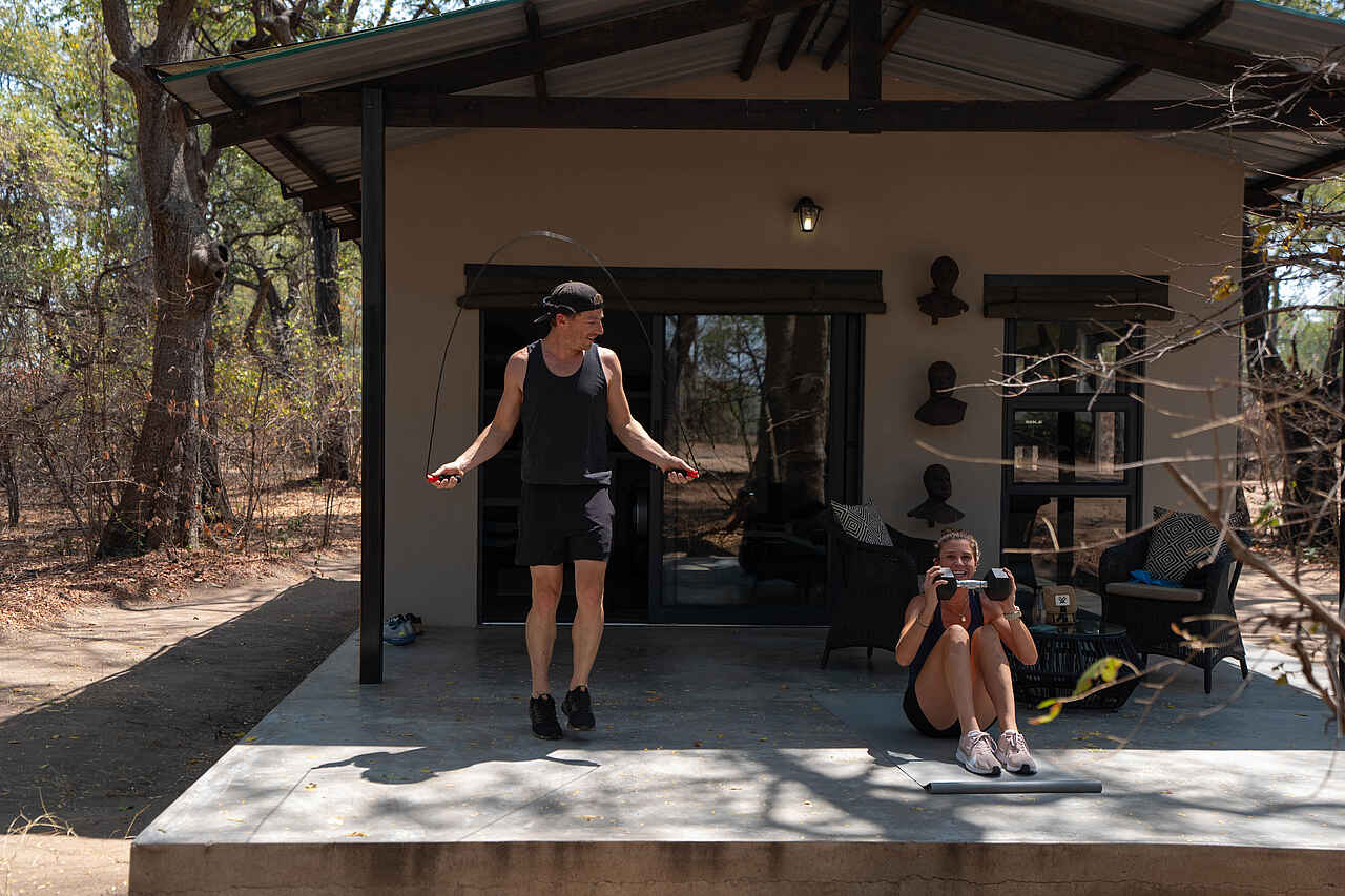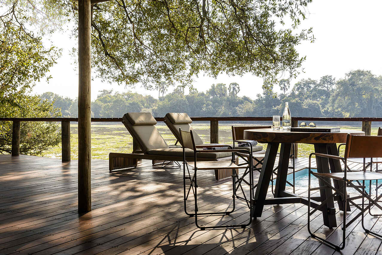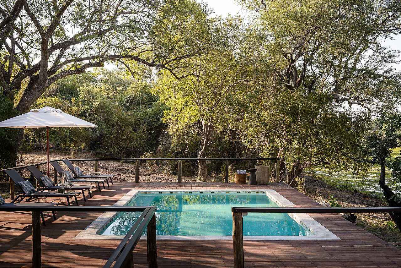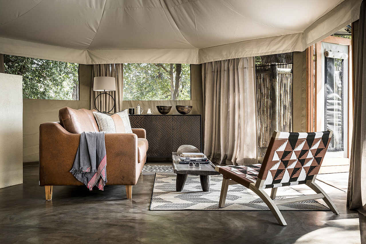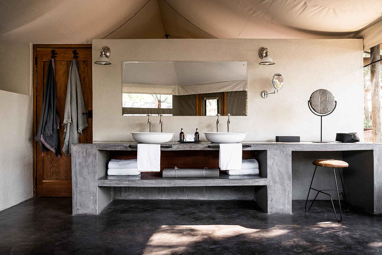 Die zentralen Einrichtungen der Sungani Lodge sind liebevoll und funktional gestaltet. Ein großzügiger Lounge-Bereich mit komfortablen Sitzgelegenheiten und raumhohen Fenstern ermöglicht einen ungestörten Blick in die umliegende Savanne. Der Swimmingpool mit angrenzenden Liegeflächen lädt zu entspannten Stunden ein und bietet nach anstrengenden Safari-Ausflügen eine wohltuende Erfrischung. Eine offene Boma dient als Treffpunkt für gemeinsame Mahlzeiten und abendliche Zusammenkünfte. Ergänzt wird das Angebot durch eine moderne Bibliothek mit einer guten Auswahl an Büchern und Reiseführern, ein klimatisiertes Fitnessstudio sowie ein professionell eingerichtetes Fotostudio mit hochwertiger Ausrüstung. Kostenfreies WLAN steht ebenfalls zur Verfügung.