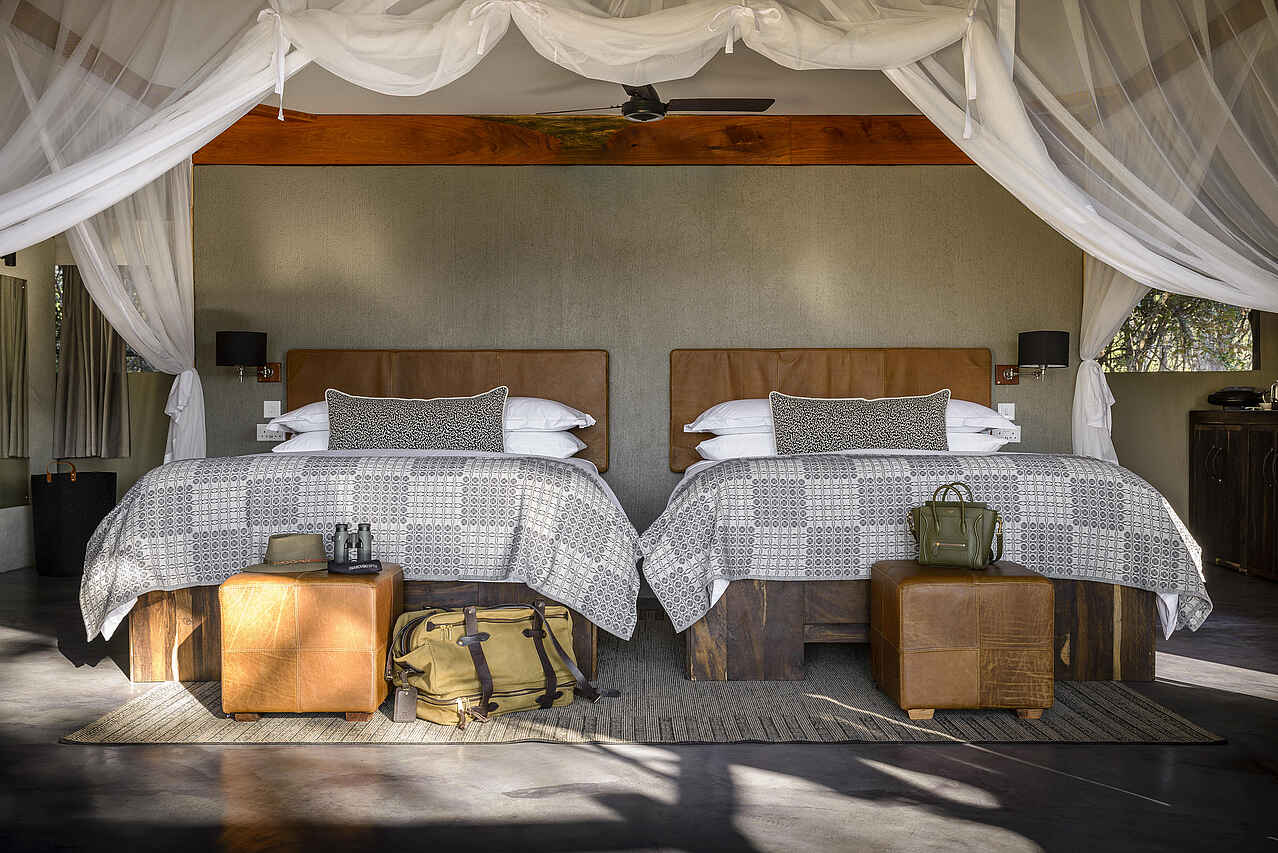 Die Gästeunterkünfte beeindrucken mit elegantem Design, das traditionellen Charme mit modernem Luxus vereint. Jeder Raum ist stilvoll eingerichtet und bietet entweder ein großzügiges Kingsize-Bett oder zwei komfortable Queensize-Betten. Bodentiefe Fenster und ein behaglicher Sitzbereich ermöglichen einen direkten Blick in die Natur. Eine gut sortierte Minibar sowie Kaffee- und Teezubereitungsmöglichkeiten tragen zu einem angenehmen Aufenthalt bei. Die En-suite-Badezimmer überzeugen mit Doppelwaschbecken, hochwertigen Armaturen, freistehender Badewanne und der Wahl zwischen Indoor- oder Outdoor-Dusche. Moskitonetze und Klimaanlagen sorgen für einen ruhigen Schlaf, während eine private Terrasse mit Sitzgelegenheiten und eigenem Plungepool das exklusive Angebot abrundet.