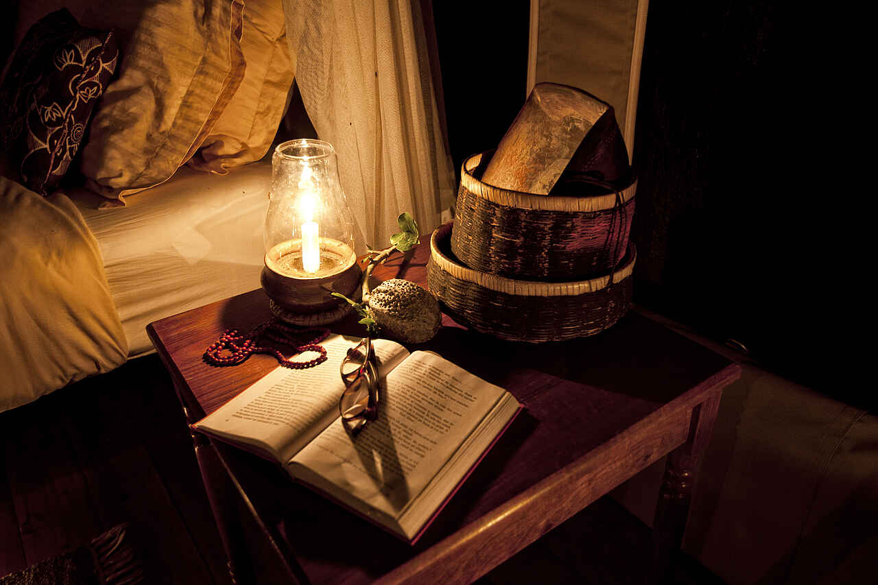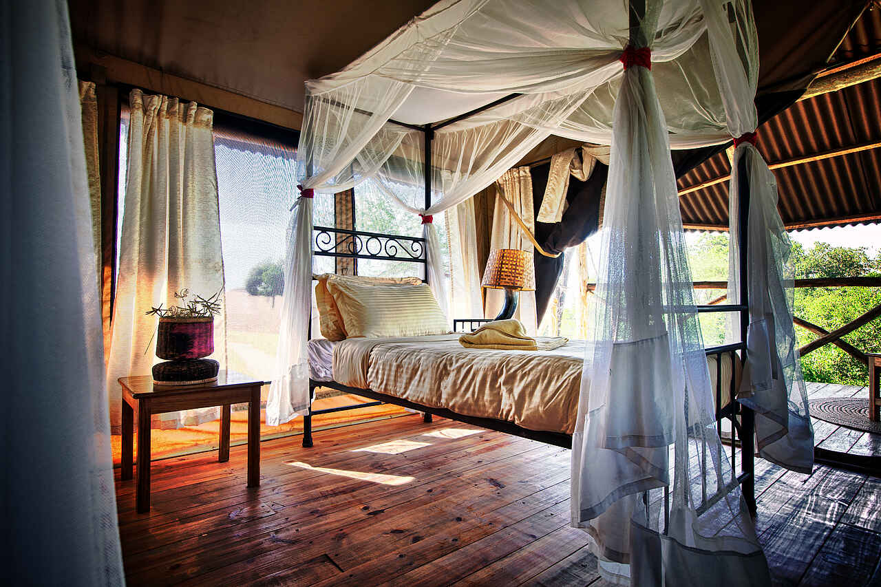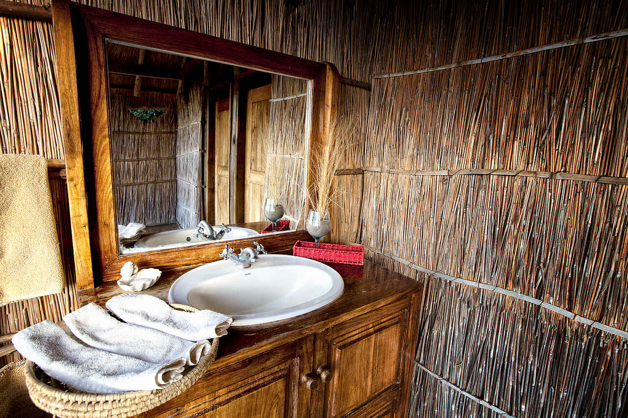 Insgesamt 21 individuelle reetbedeckte Zelte auf einer erhöhten Holzplattform mit eigener Veranda und Zugang über eine Treppe. 4 Familienzelte, 16 Standardzelte und eine Deluxe Suite mit Badewanne auf der Veranda. Jedes Zelt verfügt über separate sanitäre Anlagen mit Dusche, Spültoilette und Waschbecken. Solarbetriebener Durchlauferhitzer und 24 Stunden verfügbarer Strom. Außerdem Moskitonetze, Gepäckablagen, Mini-Lounge und Wäscheservice gegen Aufpreis.