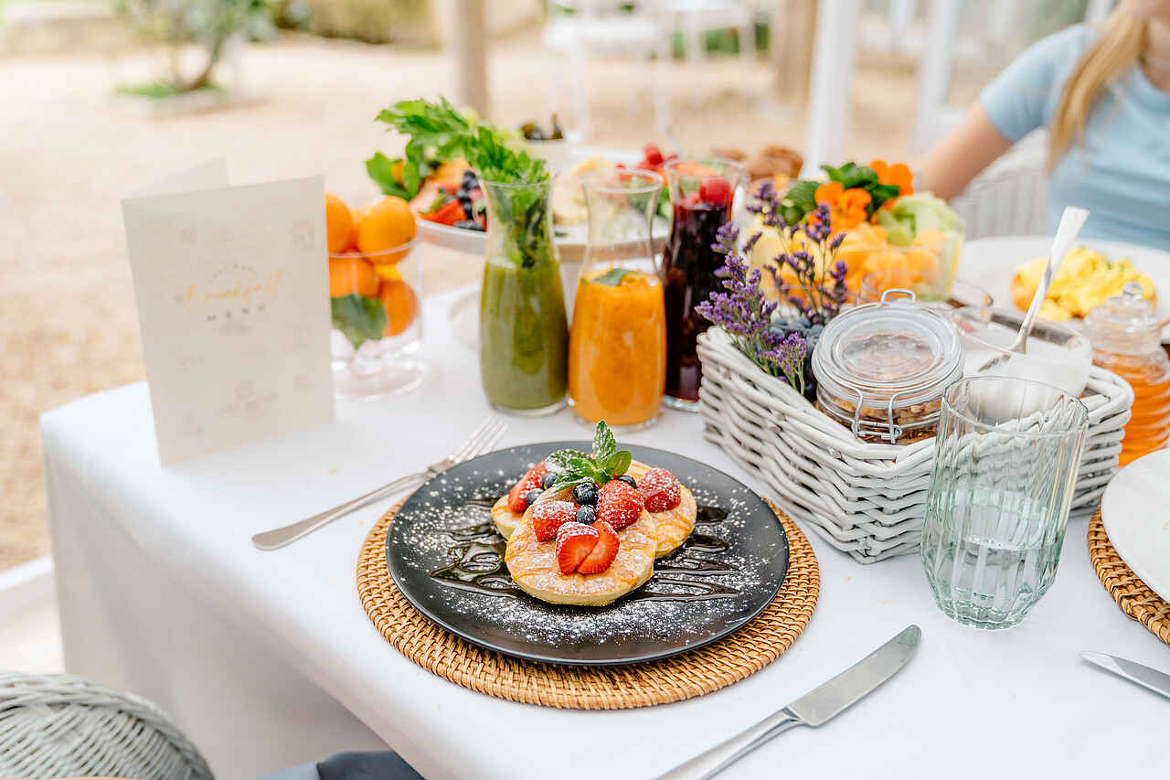 Der Tag beginnt mit einem liebevoll zubereiteten Frühstück, das à la carte serviert wird. Zur Auswahl stehen frische Früchte, Joghurt, Müsli, Eiergerichte, Käseplatten und Gebäck. Dazu gibt es frisch gebrühten Kaffee, Tee oder Säfte. Wer möchte, genießt das Frühstück auf der Terrasse oder im grünen Garten. Tagsüber werden leichte Snacks angeboten. Getränke wie Wasser, Softdrinks, Bier und ausgewählte Weine sind inklusive. Für das Abendessen empfiehlt das Team gern erstklassige Restaurants in der Umgebung und übernimmt auf Wunsch auch die Reservierung. Die Nähe zu den besten Weingütern Südafrikas macht das Hotel zu einem perfekten Ausgangspunkt für kulinarische Erlebnisse.
