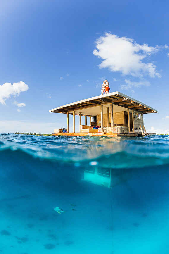 The Manta Resort liegt auf der tropischen Insel Pemba und zeichnet sich vor Allem durch sein einzigartiges Unterwasserzimmer aus, welches auf dem Meer schwimmt und in der Unterwasseretage, dem Schlafzimmer, einen 360° Blick auf Fische und Korallen bietet. Pemba Island ist eine kleine Insel am Indischen Ozean mit sehr guten Tauchrevieren.