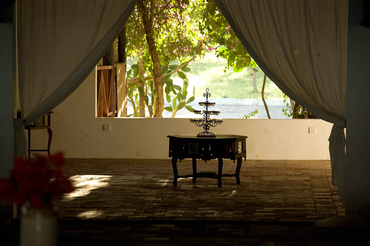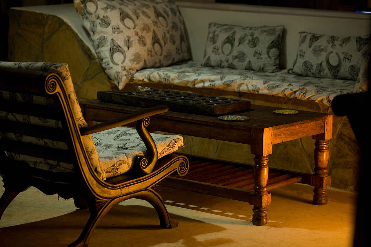 Die zentrale Einrichtung des Manta Resort ist ein offener Hauptbereich. Dort befindet sich eine Lobby mit Sitzecke und einer Bibliothek, das Restaurant und eine Lounge mit einer Bar.