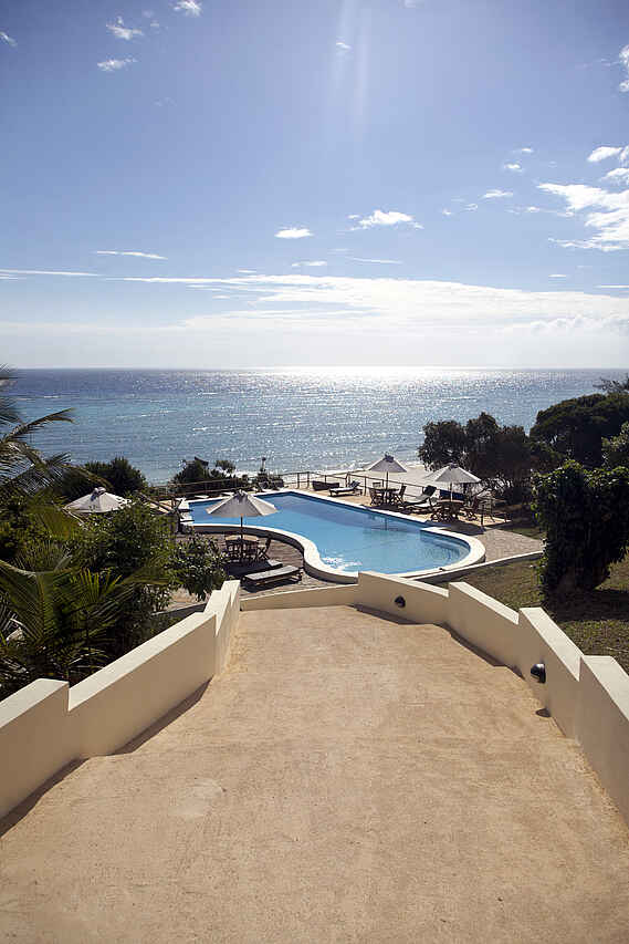 Per Fly and Transfer. Das Resort liegt auf Pemba. Diese Insel wird durch Flüge von den meisten Flughäfen in Ostafrika über Sansibar oder Dar es Salaam erreicht. Es gibt zudem lokale Direktflüge, die Besucher auf die Insel bringen.