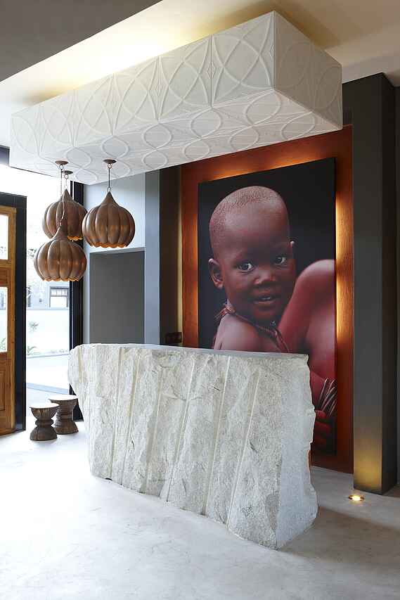 Traditionell afrikanische Gestaltung, hochwertige und stilvolle Einrichtung. Im Hauptbereich gibt es ein Restaurant, eine Bar und eine Lounge. Der Außenbereich ist gepflegt, ruhig und elegant angelegt. Außerdem: Schwimmbad, Fitnesscenter, Shop, Parkplätze und Wäscheservice. Sie finden auch Ansprechpartner für Autoverleihs, Shuttle-Services oder Ausflüge.