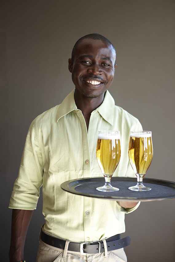 Bed&Breakfast oder Vollpension. Zum Frühstück gibt es ein heißes und kaltes, kontinentales und afrikanisches Buffet, das mit frischen Früchten dekoriert ist. Mittags und abends isst man à la carte. Neben internationalen Gerichten steht eine große Spannbreite landestypischer Kost zur Wahl. Die Qualität ist erlesen.