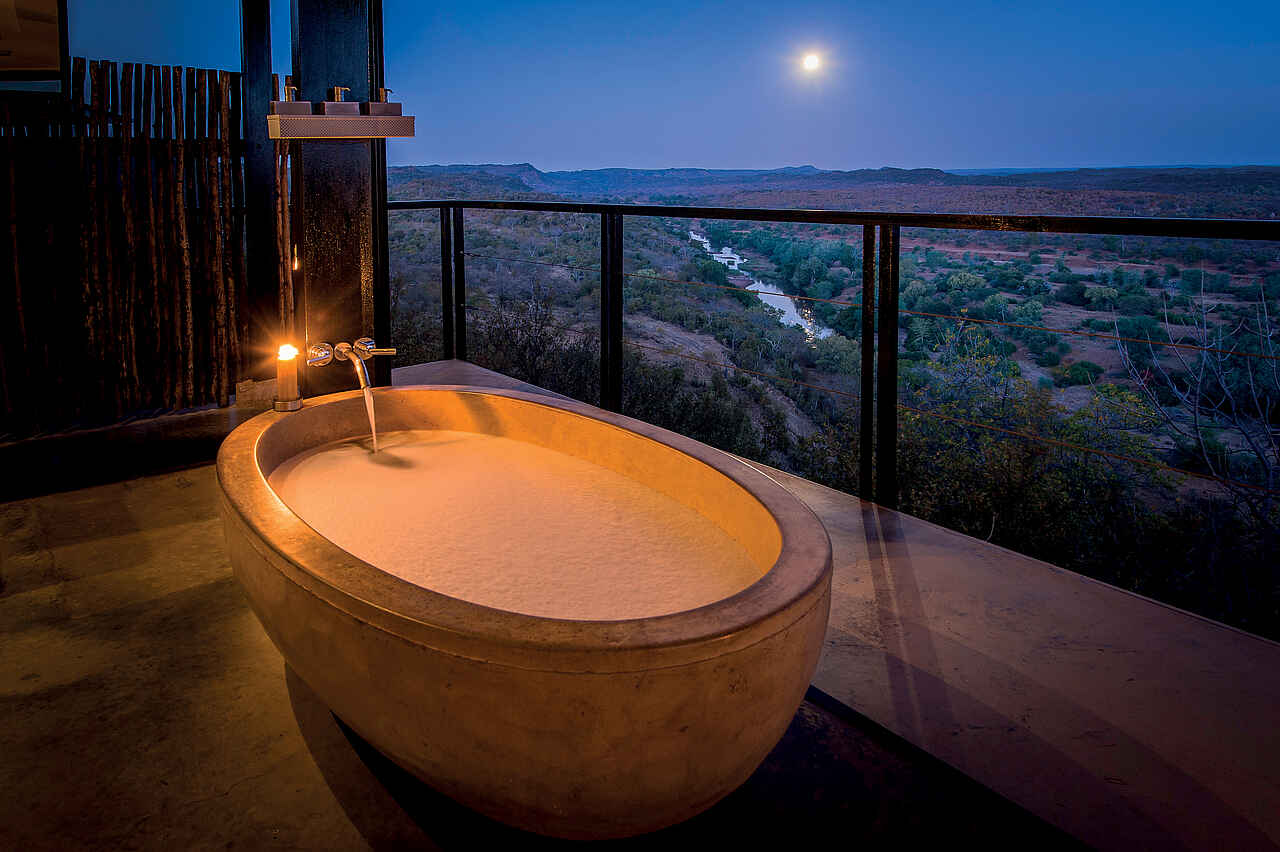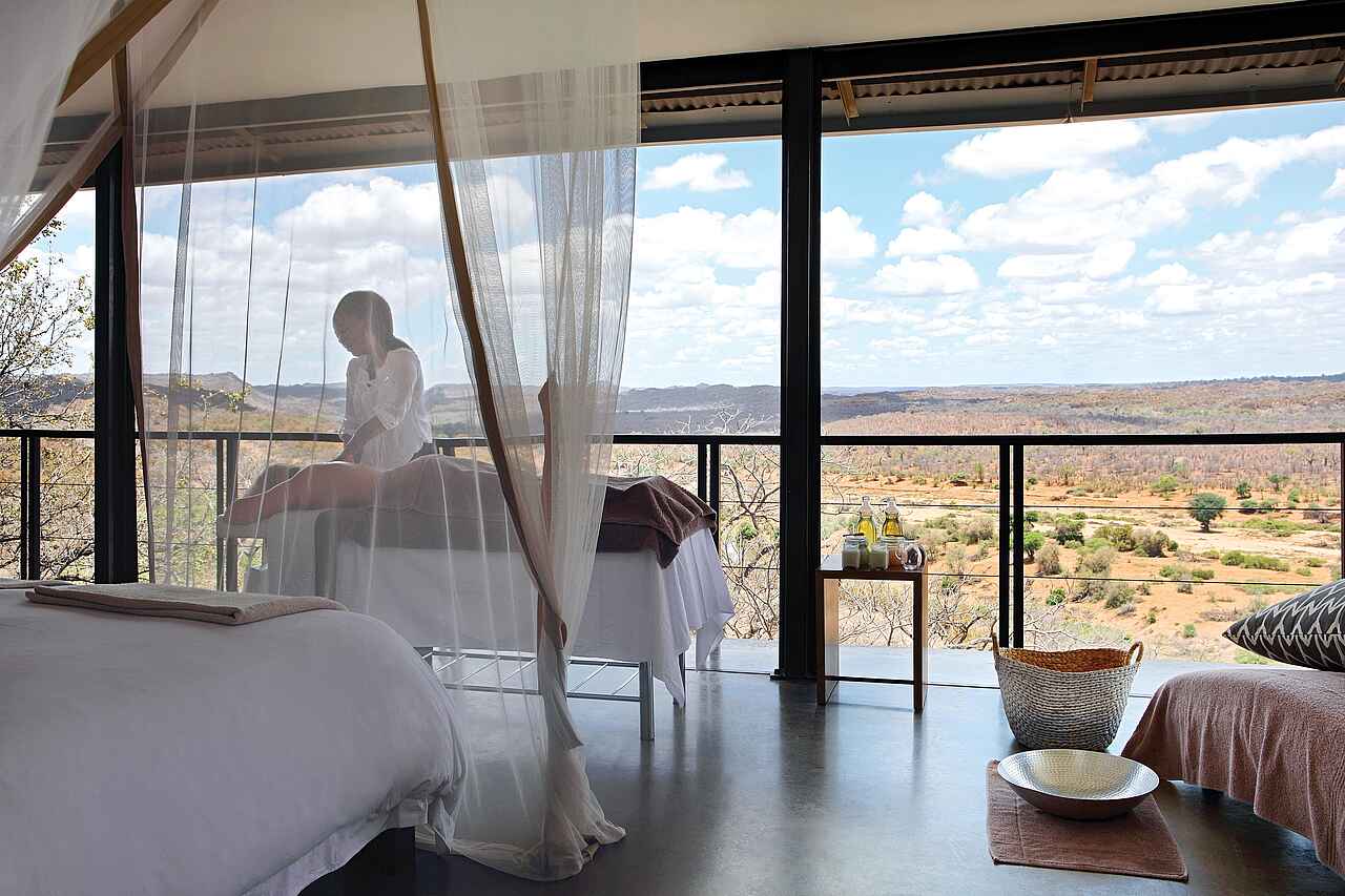 Die Lodge The Outpost eröffnet durch ihre Lage an einem Steilhang und seine offene Bauweise einen 180°-weiten Ausblick über die Landschaft. Die Luxury Spaces der Hauptlodge bieten ein hohes Maß an Privatsphäre, da sie alle in großen Abständen von einander erbaut wurden. Luxury Space 12 ist die Flitterwochen-Suite und steht am höchsten, intimsten Punkt der Lodge. The Outpost und seine Satellitenlodge Pel's Post können komplett für private Veranstaltungen gebucht werden. Darüber hinaus bietet Pel's Post einen Ort fernab von anderen, um einen zurückgezogenen Aufenthalt mit der Familie oder Freunden.