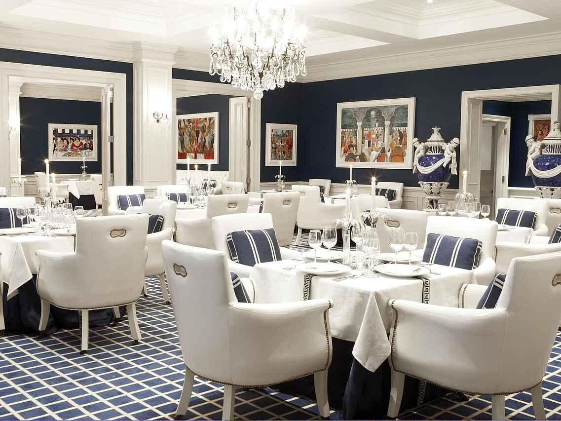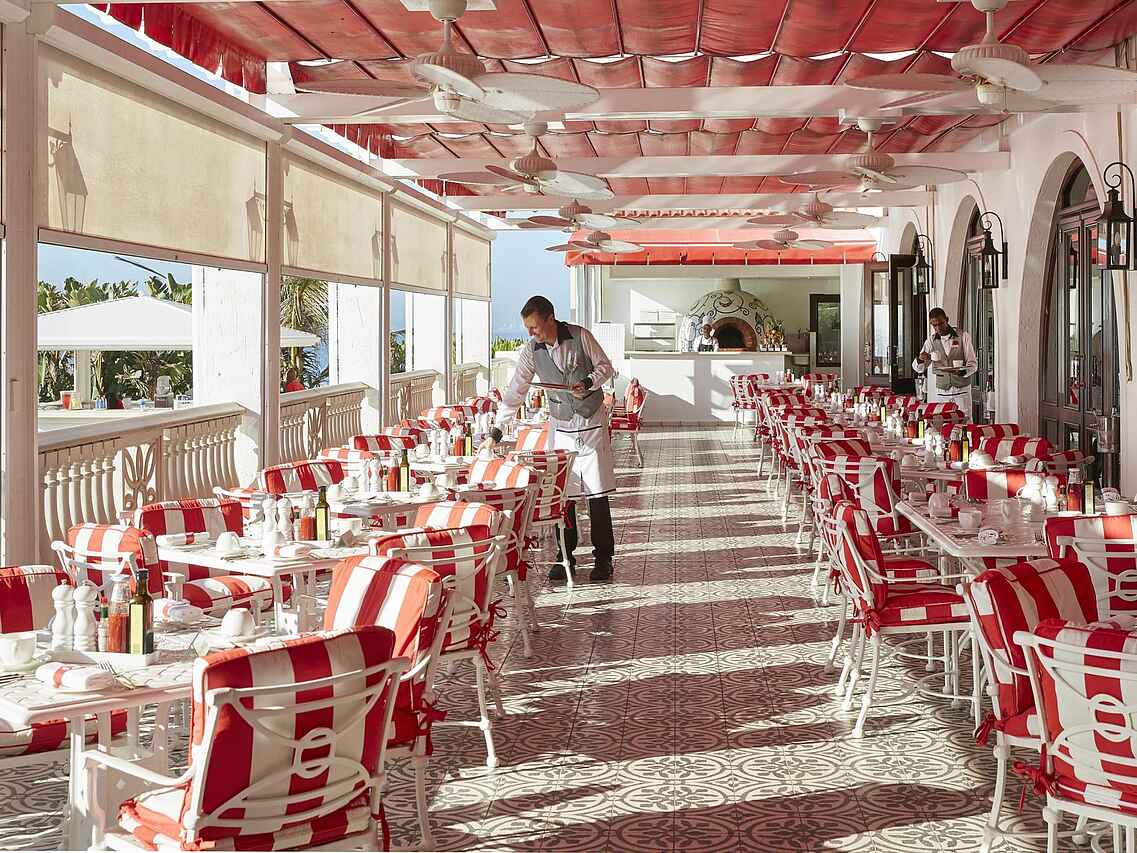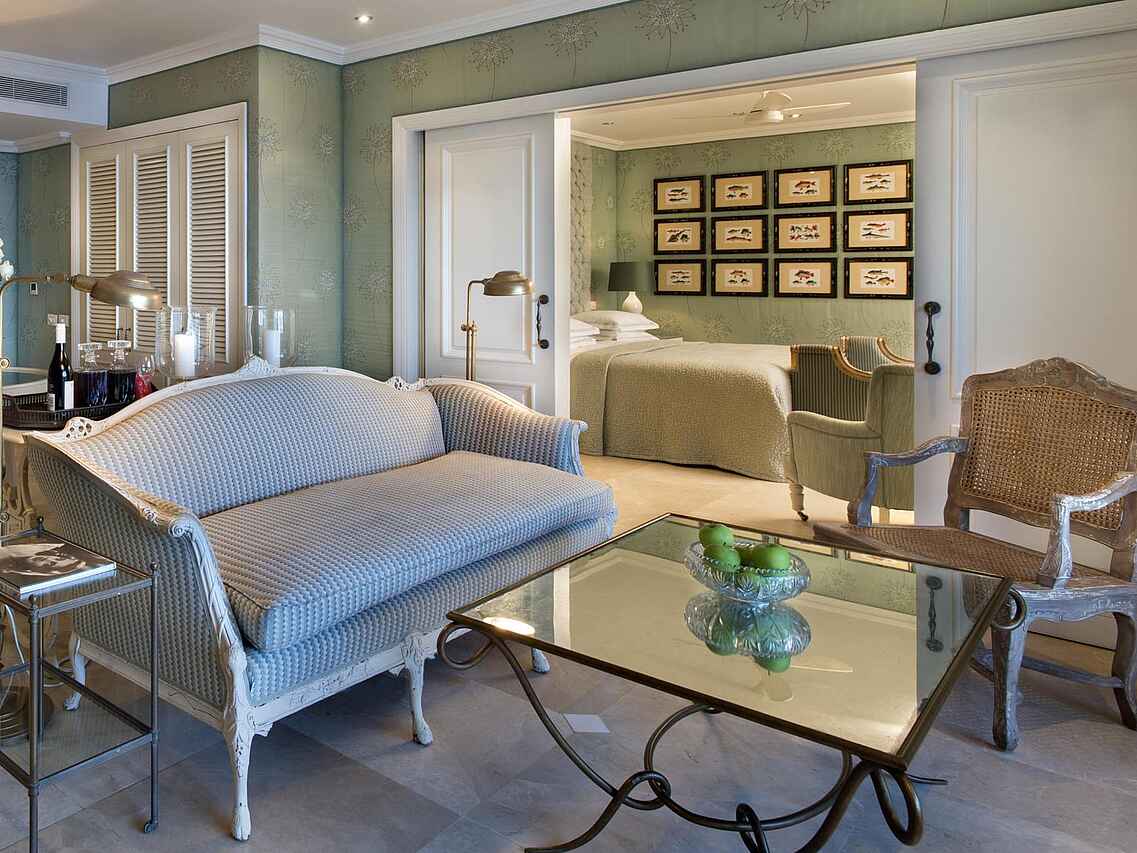 Das Hotel verfügt über 86 Zimmer, Suiten und Villas, alle individuell eingerichtet mit einer sorgfältig ausgewählten Mischung aus klassischen und zeitgenössischen Möbeln, die Komfort und Stil vereinen. Große Fenster schaffen reichlich natürliches Licht und malerische Ausblicke auf das Meer oder die Gärten des Hotels, ergänzt durch stilvolle Beleuchtung und kunstvolle Details, die eine warme und einladende Umgebung schaffen. Die Badezimmer sind groß und mit Marmor verfeinert und verfügen über fantastische Regenduschen und Badewannen.