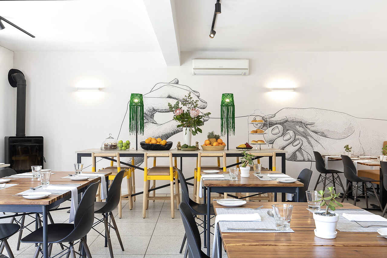 Der weitläufige Garten mit seinen beiden Pools bildet das grüne Herz des Hotels. Rundherum laden Sonnenliegen und schattige Ecken zum Entspannen ein. Die stilvolle Lounge ist offen und lichtdurchflutet, mit gemütlichen Sitzbereichen, die zum Ankommen und Verweilen einladen. Wer etwas Ruhe sucht, findet sie in der kleinen Bibliothek oder im Innenhof, wo sich verschlungene Wege durch das Grün ziehen. Der Tag klingt entspannt an der Bar oder auf der Terrasse aus. Wer aktiv bleiben möchte, nutzt das nahegelegene Fitnessstudio.