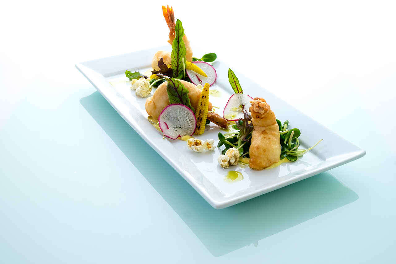 Gebucht wird inklusive Frühstück. Das Essen ist à la carte und besteht aus internationalen oder regionalen Gerichten. Zu Frühstück, Mittag- und Abendessen wird gemeinschaftlich im Innen- oder Außenbereich des SeaFood Restaurants oder am gegenüberliegenden Pool gespeist. Eine Spezialität ist das Tapas-Menü. Dazu gibt es ausgezeichnete Weine und für kühle Drinks und Snacks zwischendurch gibt es die Sandbar im Untergeschoss.