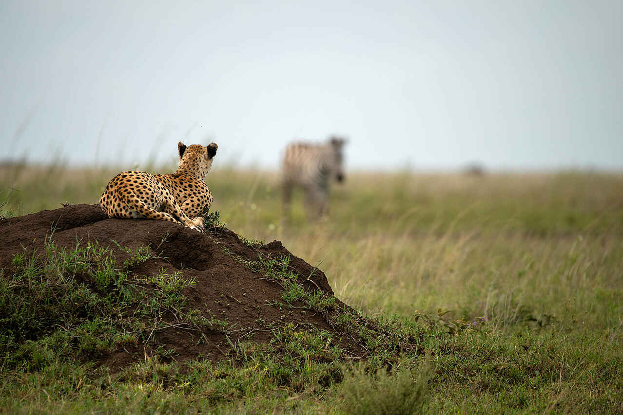 Gäste der Retreats verfügen über ein eigenes Safari-Fahrzeug und einen privaten Guide, wodurch Pirschfahrten vollständig flexibel planbar sind. Morgen- und Nachmittagssafaris führen durch die östlichen Ebenen der Serengeti, ein Gebiet, das für häufige Sichtungen von Geparden, Löwen, Hyänen und Servalen bekannt ist. Große Herden von Zebras, Gnus und Gazellen sind regelmäßig unterwegs, besonders während der Migration. Walking-Safaris werden angeboten und eröffnen eine bodennahe Perspektive auf Spuren, Vegetation und kleinere Tierarten. Optional können Heißluftballonfahrten zum Sonnenaufgang organisiert werden.