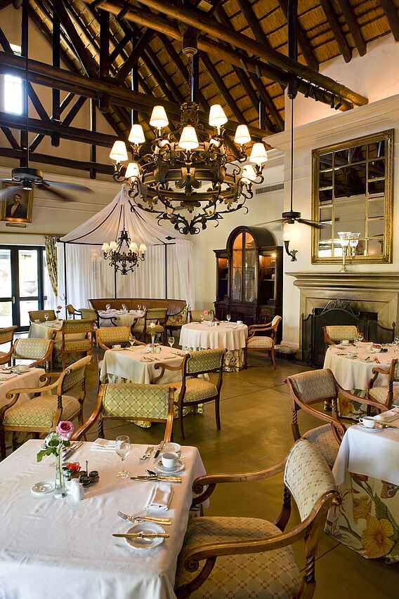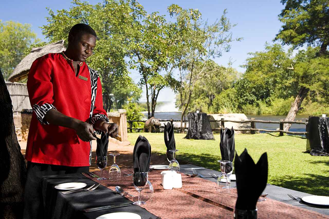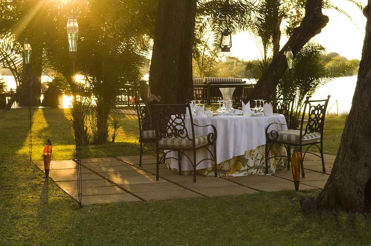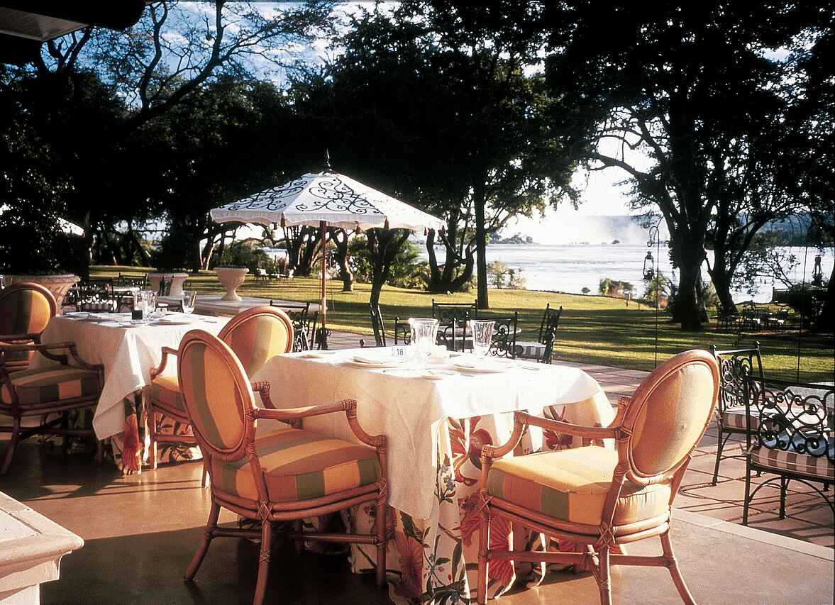 Frühstück inklusive. Abends und unter tags stehen „The Royal Livingston Dining Room“, „The Lounge“ und das „Sundeck“ zur Verfügung. Kaffee und Tee sind ebenfalls auf den Zimmern vorhanden. Es gibt auch die Möglichkeit, ein Picknick zu bestellen. Abends kann zudem ein Dinnerausflug auf dem liebevoll restaurierten Zug The Royal Livingstone Express mit antiker Dampflok gebucht werden, 5-Gänge-Menü und Fahrt durch das abendliche Sambia inklusive.