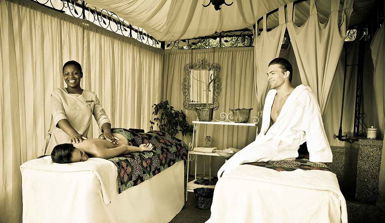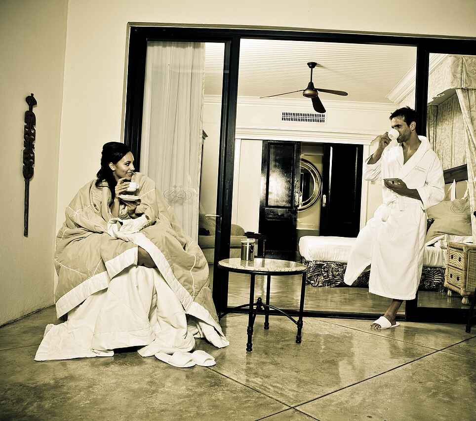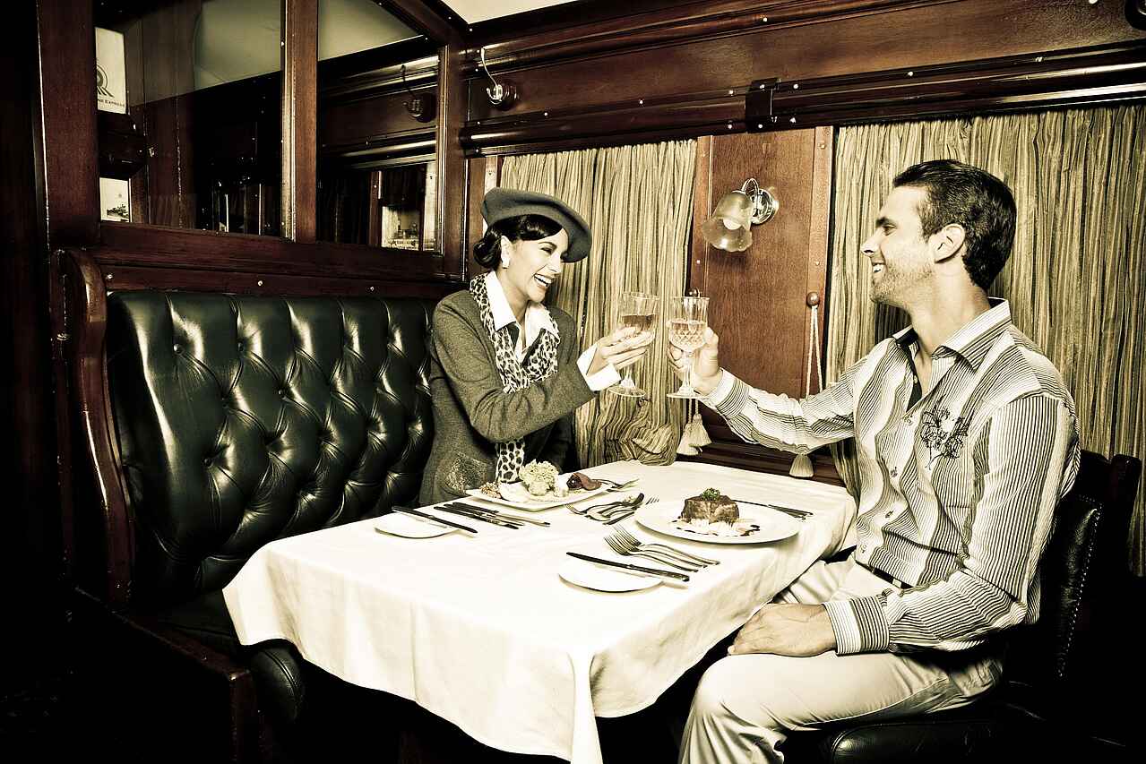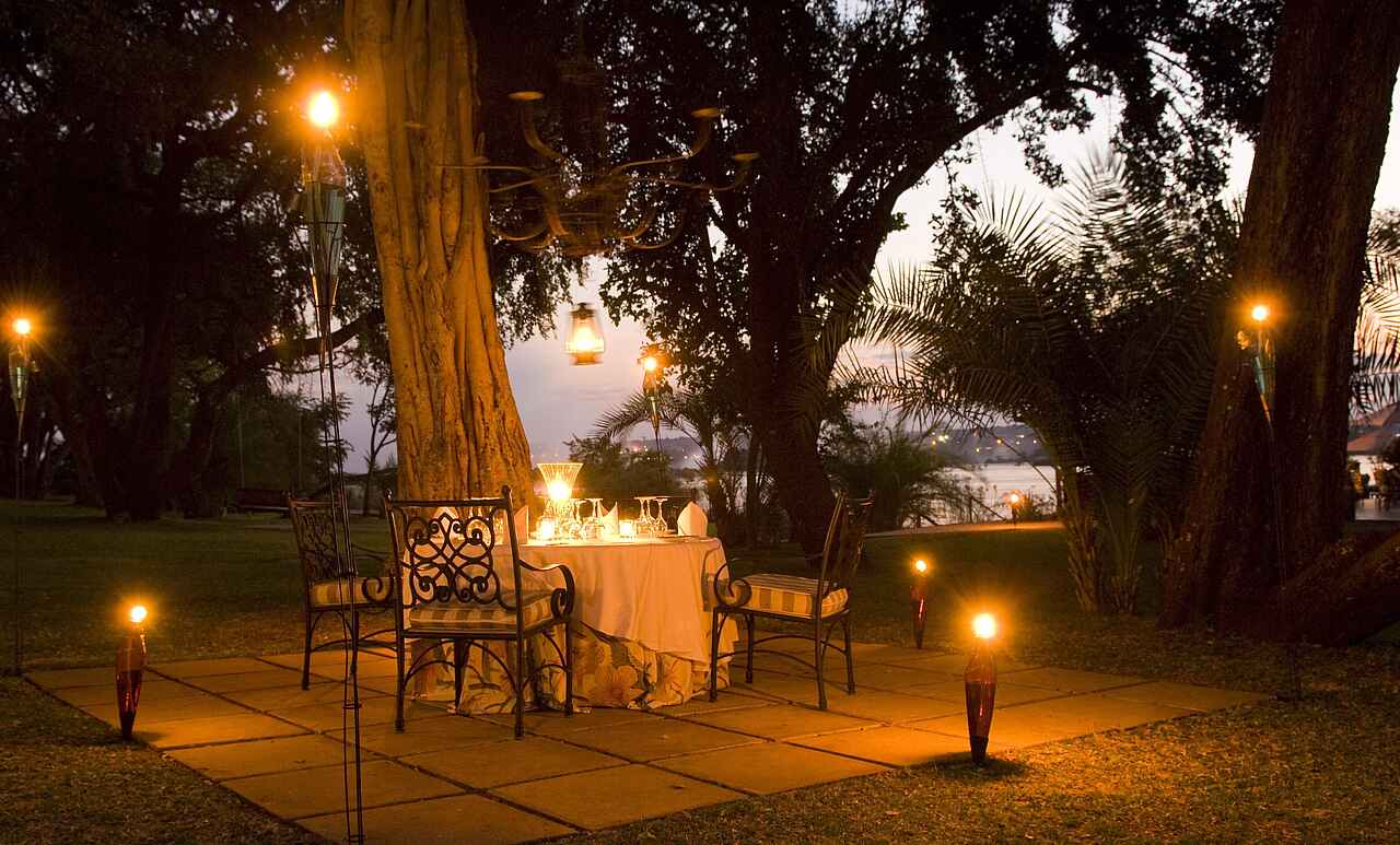 Frühstück inklusive. Abends und unter tags stehen „The Royal Livingston Dining Room“, „The Lounge“ und das „Sundeck“ zur Verfügung. Kaffee und Tee sind ebenfalls auf den Zimmern vorhanden. Es gibt auch die Möglichkeit, ein Picknick zu bestellen. Abends kann zudem ein Dinnerausflug auf dem liebevoll restaurierten Zug The Royal Livingstone Express mit antiker Dampflok gebucht werden, 5-Gänge-Menü und Fahrt durch das abendliche Sambia inklusive.