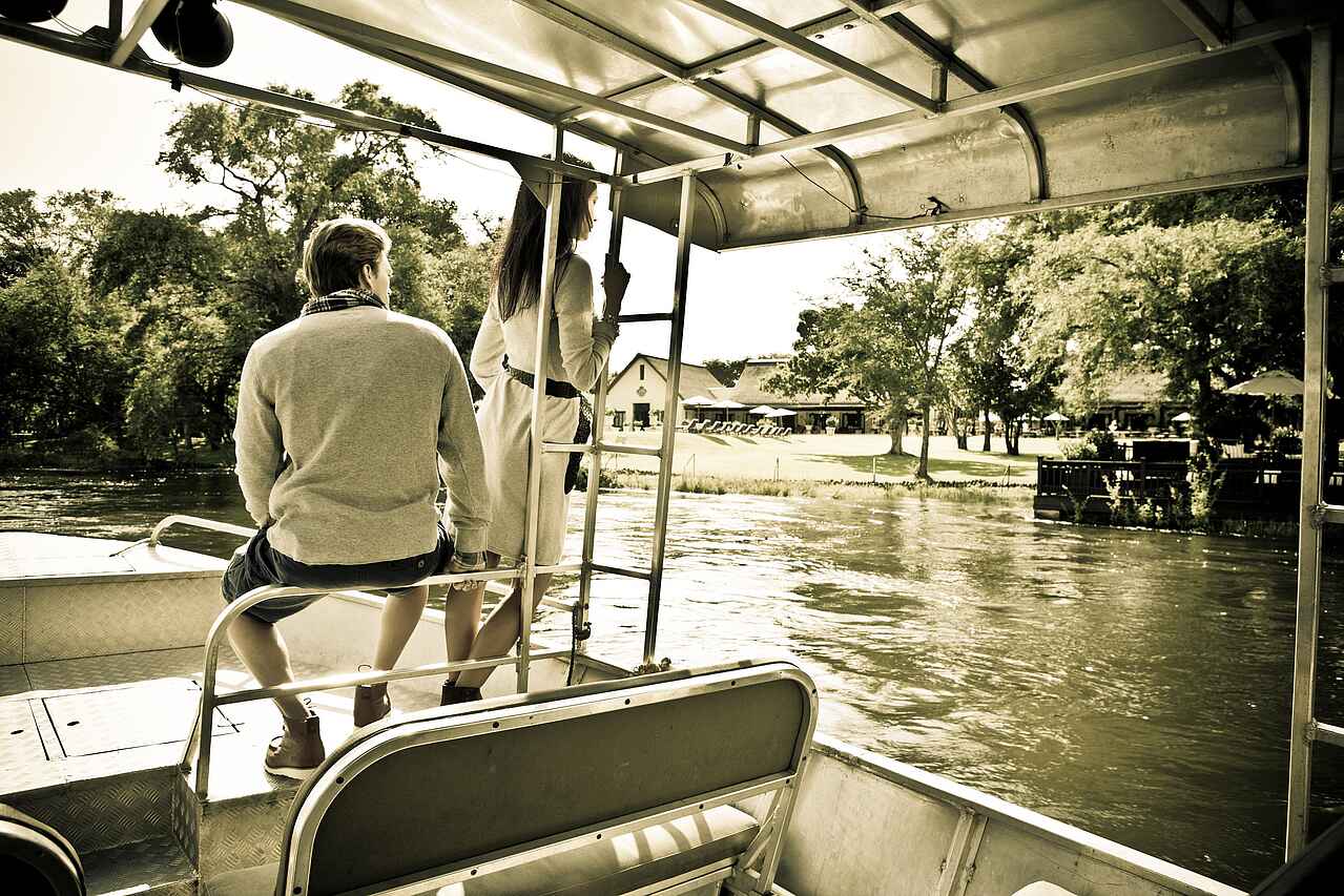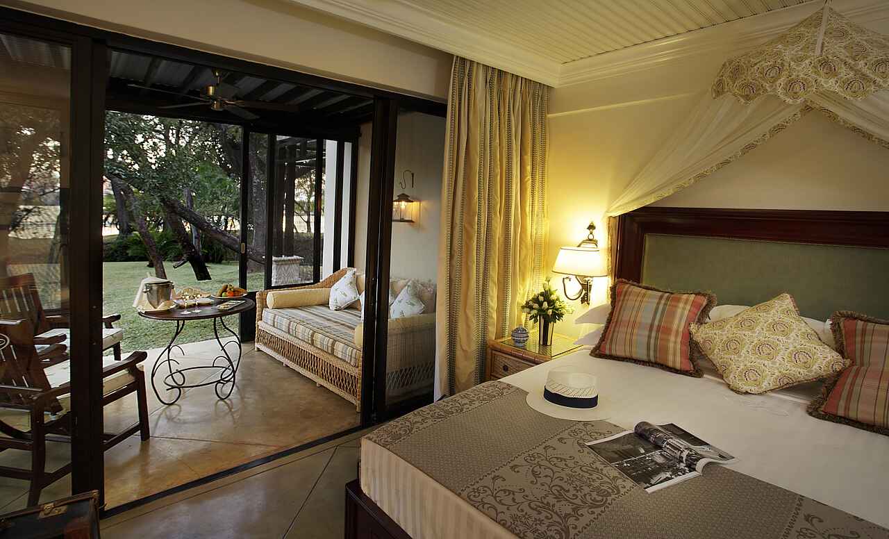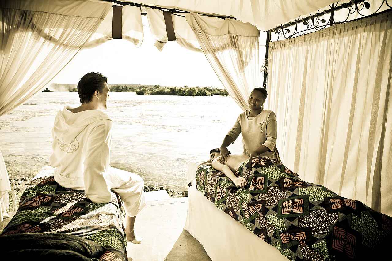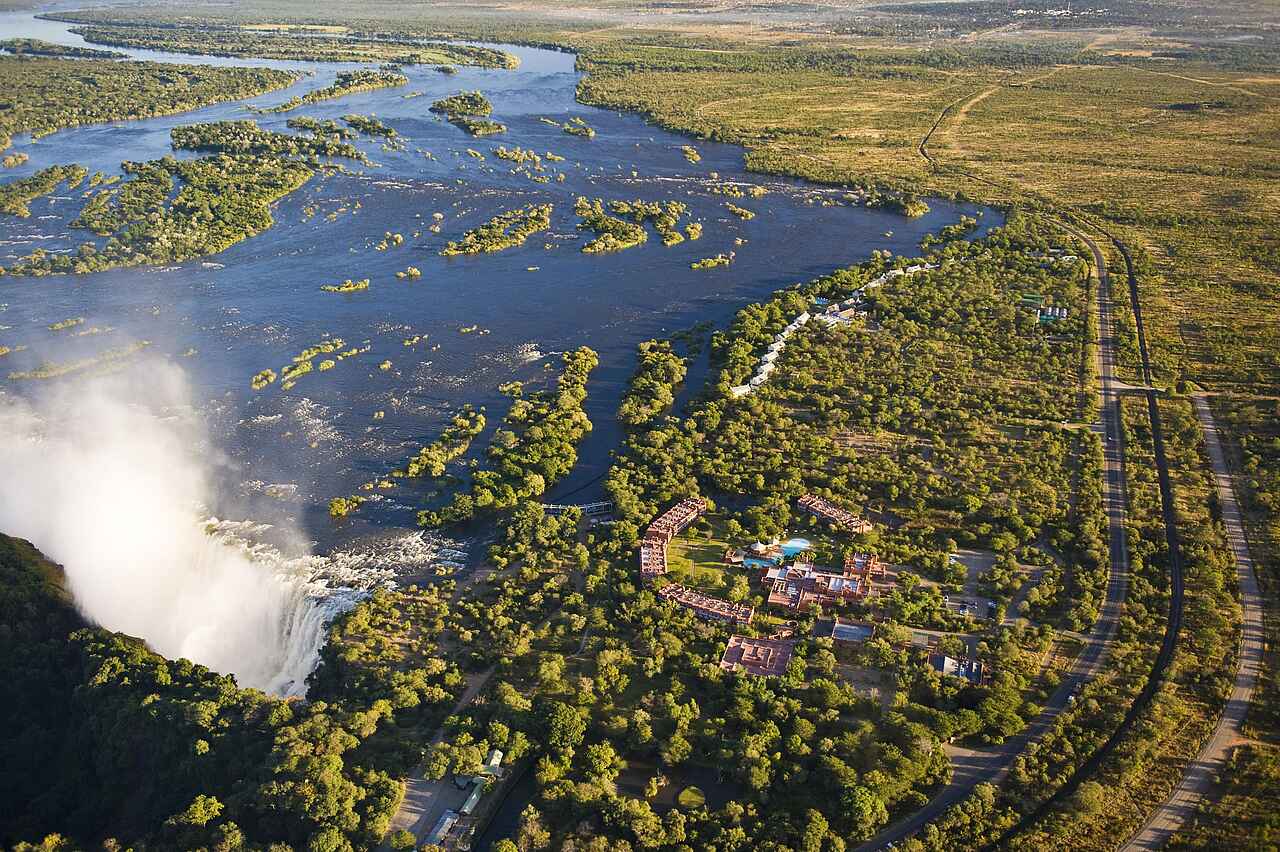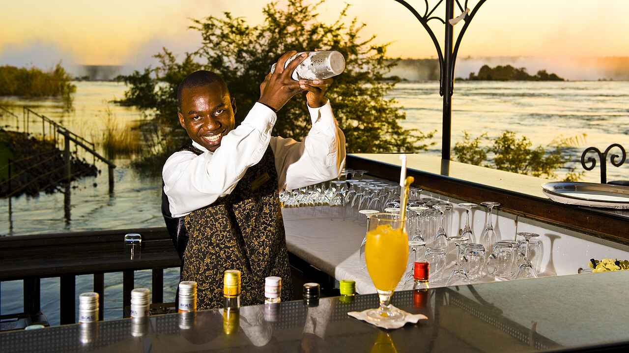 The Royal Livingstone hat die vielleicht beste Lage aller Unterkünfte und Hotels in Livingstone - direkt an den Wasserfällen. Kolonial-stilvolles und luxuriöses Ambiente an einem der sieben Weltnaturwunder. Ein privater Zugang auf dem Hotelgelände erlaubt den Gästen unbeschränkten und kostenlosen Zutritt zu den Fällen. Durch die Lage innerhalb des Mosi-oa-Tunya Nationalparks ist das Hotelareal Heimat freilaufender Zebras, Giraffen und Affen und selbst Nilpferde und Elefanten können von den spektakulär am Flussufer gelegenen Sonnendecks beobachtet werden.