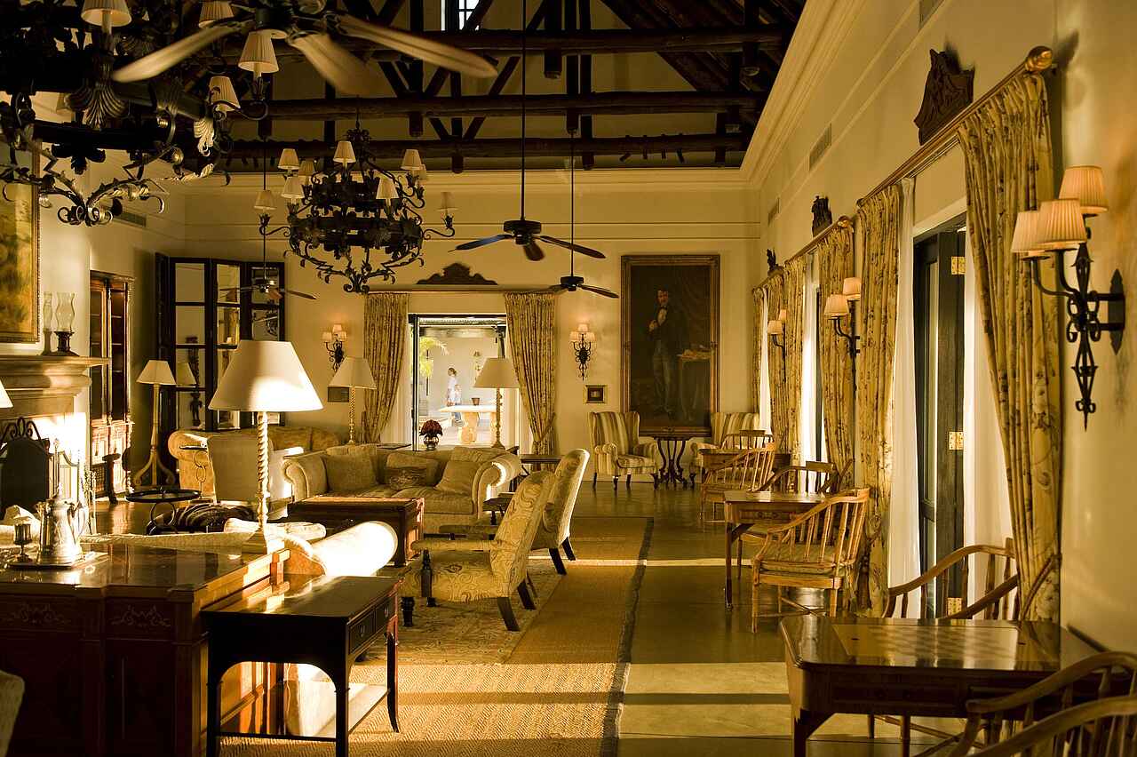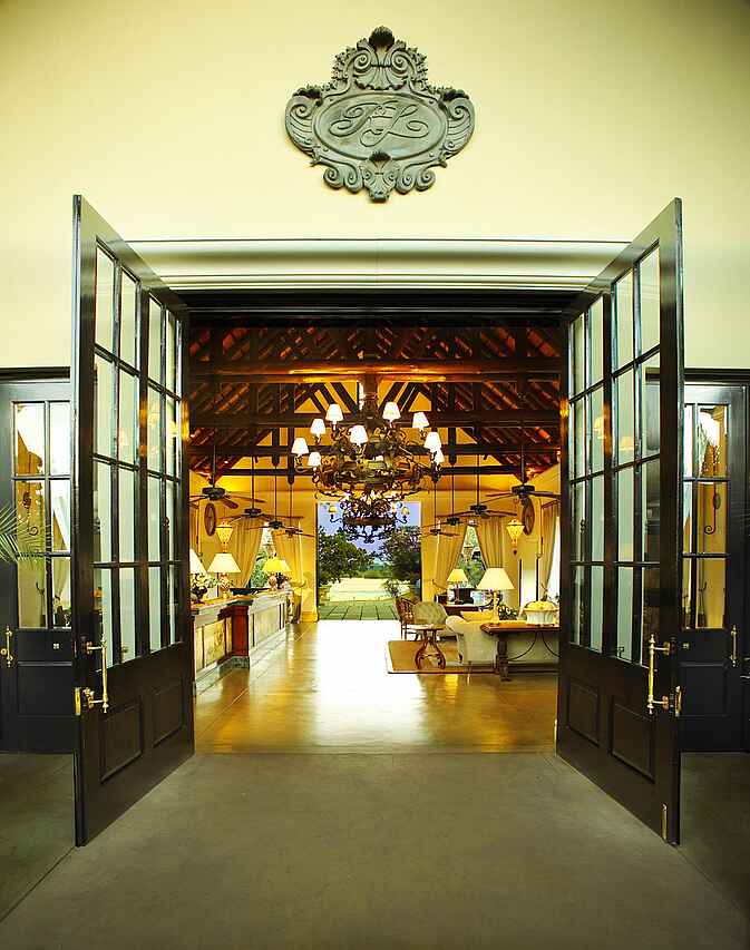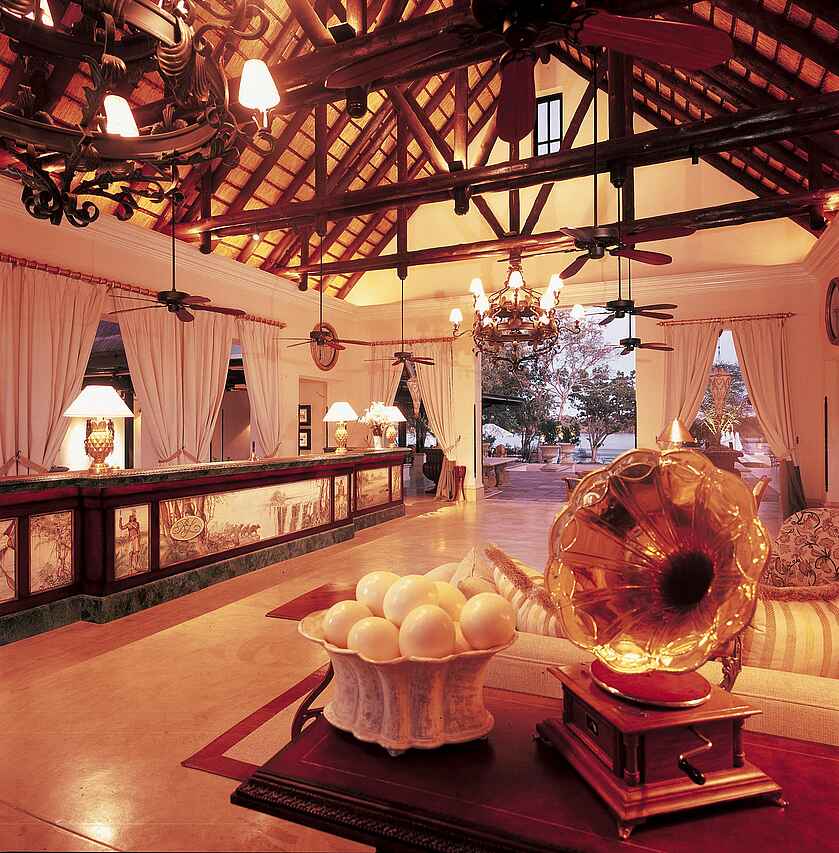 Zentraler Empfangsbereich mit Speisesaal im einem und Bar und Lounge im anderen Flügel, dazwischen liegen Arkaden mit einem Springbrunnen und dem Souvenirshop. Vor dem Zentralbereich des Hotels befinden sich die große Veranda und ein schöner Swimmingpool mit Sonnenliegen. Durch den Garten gelangt man zum Sonnendeck am Flussufer. Außerdem ist ein Konferenz- und Businesszentrum vorhanden.
