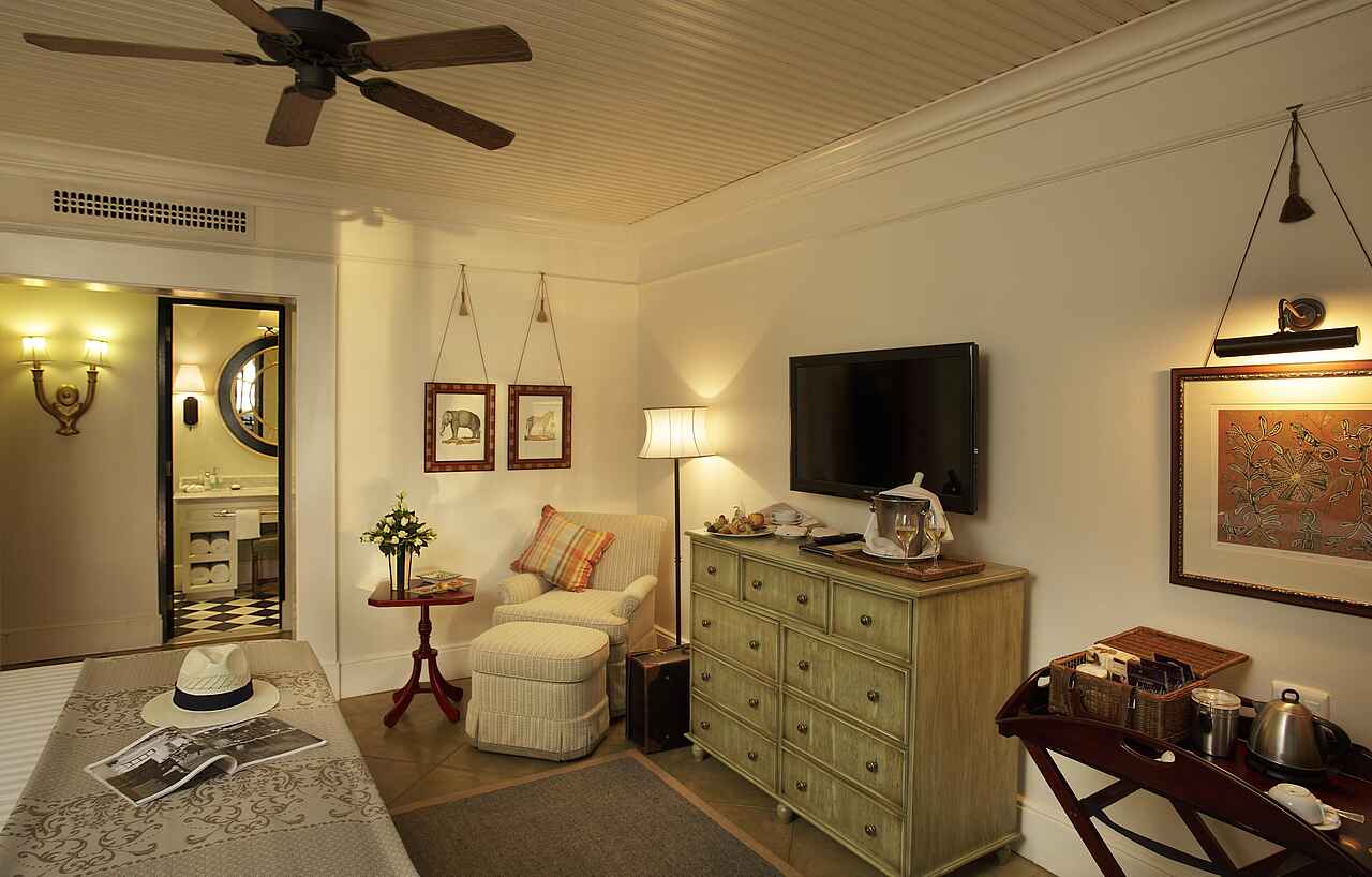 Zimmeraufteilung: 1 Präsidentensuite, 3 Luxussuiten, 167 Luxury-Zimmer mit 1 Kingsize-Bett oder 2 Twinbetten, 2 behindertengerechte Zimmer. Alle Zimmer mit privatem Balkon oder Veranda und Blick auf das Flussufer. Butler-Service, Minibar, Mini-Safe, Satellitenfernsehen, Telefon, Klimaanlage, Haartrockner, Kaffee und Tee zur Erfrischung, Universaladapter, Weckservice und Schreibtisch inkl. Die Badezimmer, separat vom Schlafbereich, sind sehr großzügig angelegt, mit Dusche, Wanne, Waschbecken, TV, fließend Kalt- und Warmwasser. Wäscheservice inklusive.
