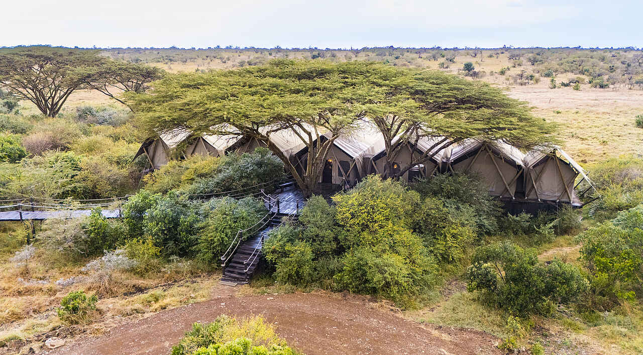 Die Sambuk Suite at Mara Nyika liegt in der privaten Naboisho Conservancy im Südwesten Kenias, angrenzend an das Masai Mara Nationalreservat. Die Umgebung zeichnet sich durch weite Savannen, sanfte Hügel und Akazienwälder aus, die Lebensraum für eine vielfältige Tierwelt bieten.