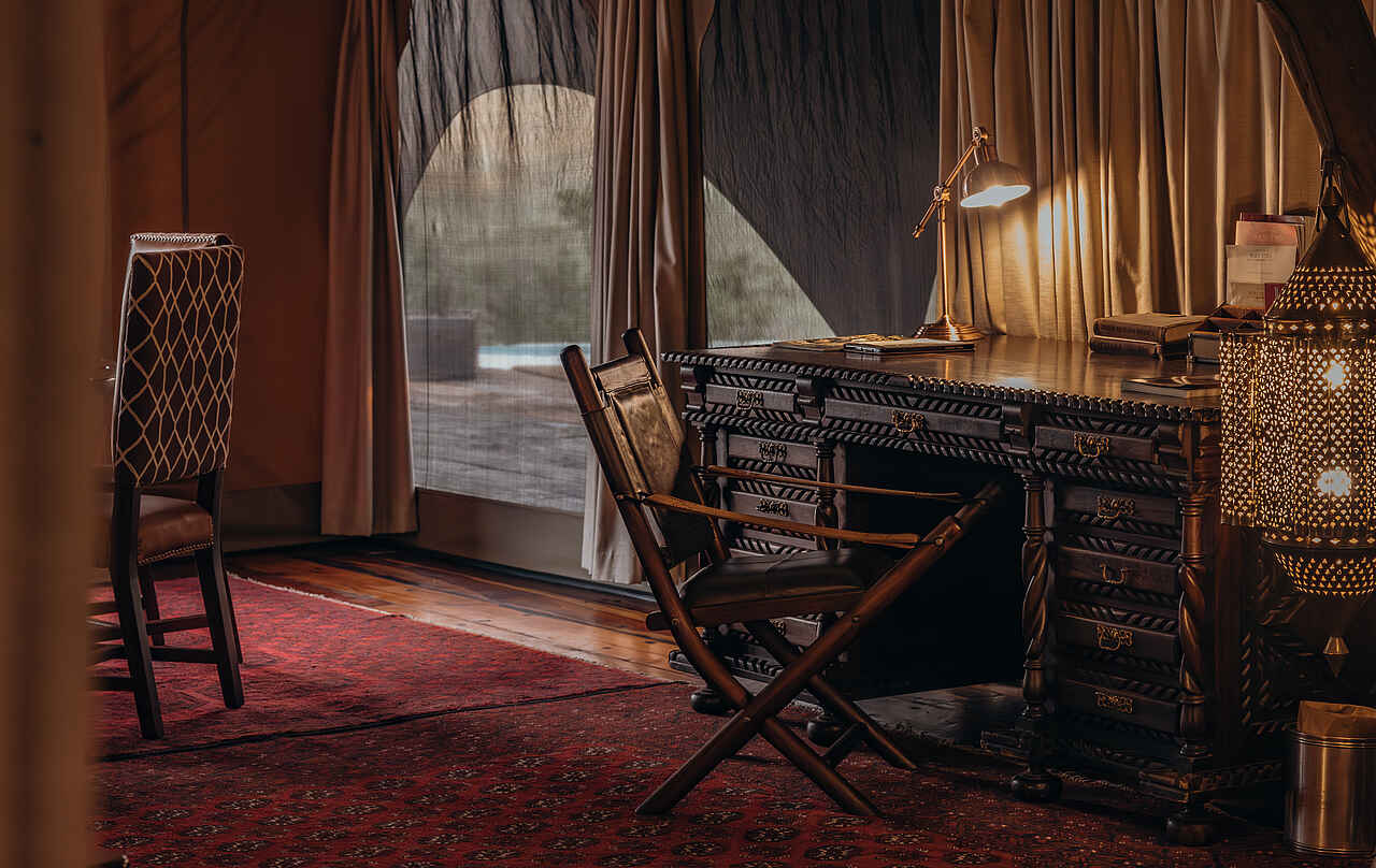Die Sambuk Suite umfasst zwei großzügige Schlafzimmer, die mit stilvollen und hochwertigen Annehmlichkeiten ausgestattet sind. Jedes Zimmer verfügt über ein eigenes En-suite-Badezimmer mit separater Toilette, einer eleganten freistehenden Kupferbadewanne, Doppelwaschbecken sowie einer Innen- und Außendusche - perfekt, um sich nach einem erlebnisreichen Safari-Tag zu erfrischen. Die Kingsize-Betten, die auf Wunsch auch als zwei Einzelbetten arrangiert werden können, sind mit erstklassigen Bettwaren ausgestattet. Moskitonetze sorgen für einen ungestörten Schlaf. Für zusätzlichen Komfort stehen in jedem Schlafzimmer ein Schreibtisch, eine Minibar, ein Safe sowie ein Deckenventilator zur Verfügung.