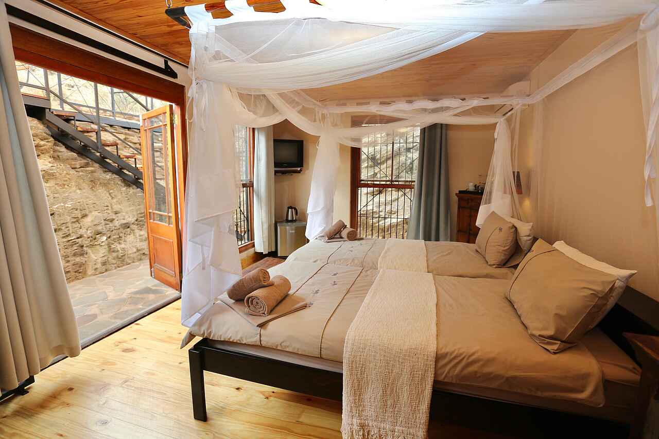 Rund um das kleine Hotel eben zahlreiche Vogelarten, darunter Turakos, Gabelracken, Bienenfresser und verschiedene Webervögel. Auch Klippschliefer, Agamen und gelegentlich Paviane oder Stachelschweine lassen sich vom Garten oder während einer Wanderung beobachten. Für intensive Tierbeobachtungen empfiehlt sich der Besuch eines Safaricamps in einem der Nationalparks, etwa in Etosha, im Damaraland oder in der Kalahari.