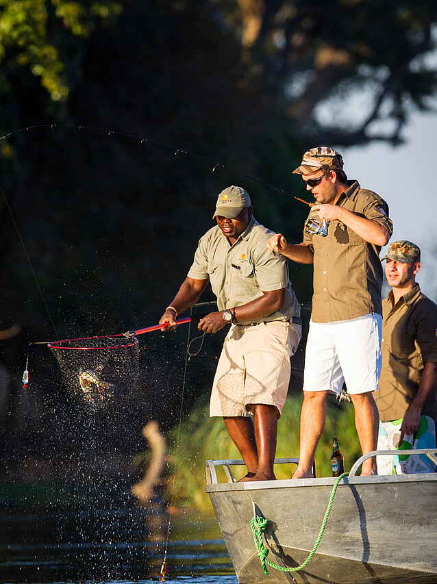 Safaris sowohl tagsüber als auch nachts, Streifzüge zu Fuß, Angeln, Kanufahrten, Ausflüge im Motorboot oder Besuche bei den Dorfgemeinschaften in der Umgebung.