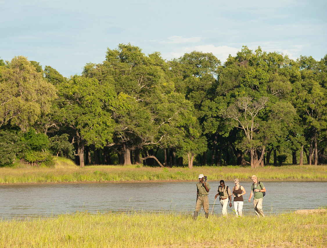 Das Time + Tide Luwi liegt äußerst abgeschieden, Meilen weit entfernt von anderen Unterkünften und Menschen in der Buschlandschaft am Luwi River. In den naheliegenden Lagunen halten sich ganzjährig große Populationen von Nilpferden auf. Walking Safaris.