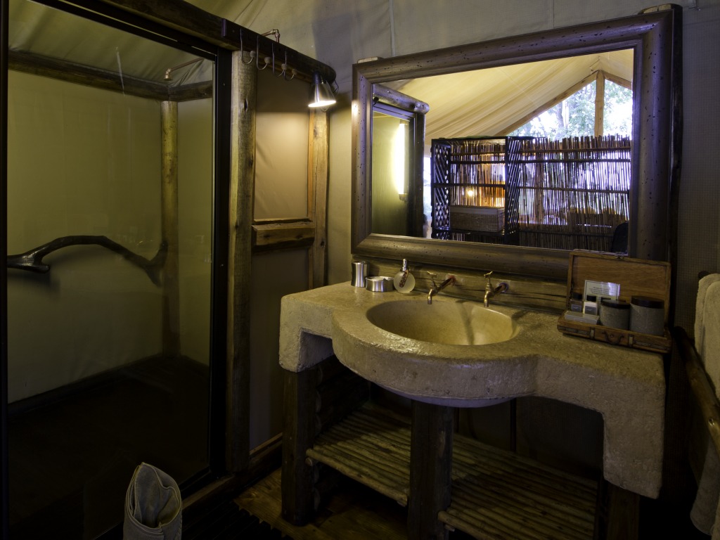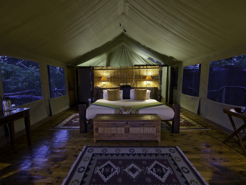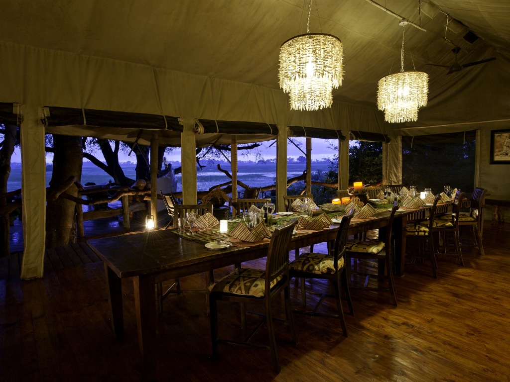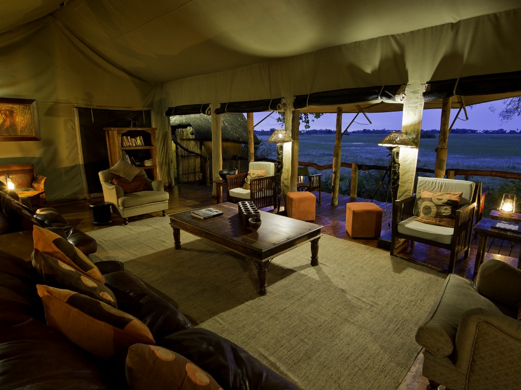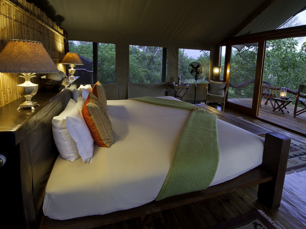 7 Zelte mit Doppelbetten auf Plattformen mit gutem Blick auf die Flutebene, Vergrößerung der Zeltfläche Anfang 2013 fertiggestellt. Jedes Zelt mit eigenem Bad, fließend Kalt- und Warmwasser, WC. Sitzgelegenheiten, Tisch. Veranda mit Sonnenstühlen. Eins der Zelte ist die Honeymoon-Suite und verfügt über ein besonders geräumiges Bad. Ein Zelt ist ein Familienzelt mit zwei Räumen, zwei getrennten Bädern und einer gemeinsamen Mini-Lounge. Die Zelte werden über gepflegte, sandige Fußwege erreicht.