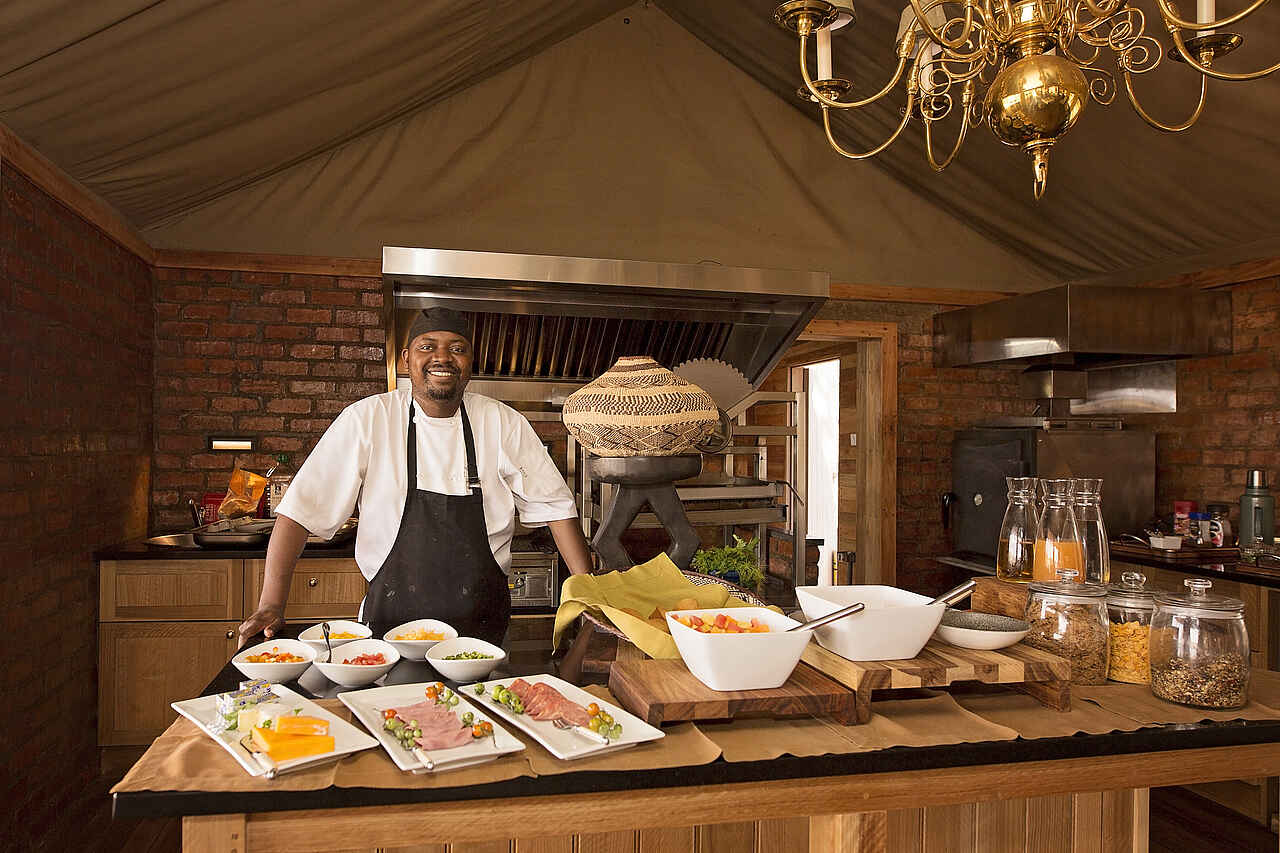 Verney´s Camp bietet eine vielfältige kontinentale Küche mit Frühstück, Brunch und Abendessen. Softdrinks und alkoholische Getränke sind im Preis inbegriffen.