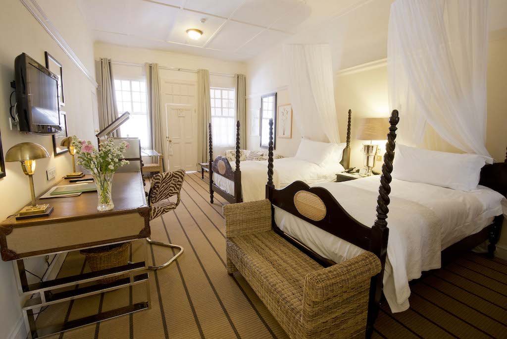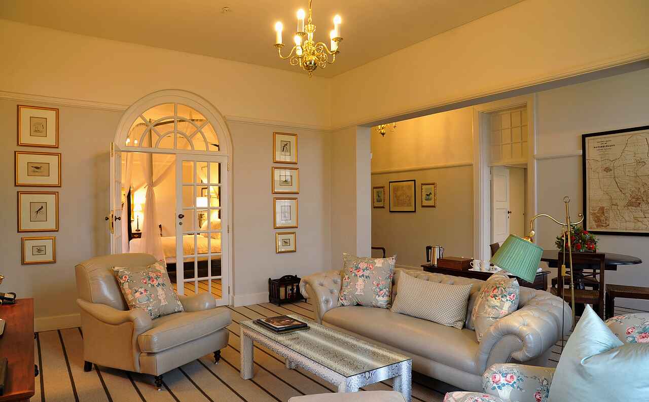 161 Räumlichkeiten mit Satelliten-TV, Safe, Telefon, Bad en suite (Badewanne, Dusche, Waschbecken, Toilette, Fön, Steckdose, fließend Kalt- und Warmwasser). 24-Stunden-Zimmerservice und Wäscheservice. Alle Suiten und Deluxe-Zimmer mit gekühlter Minibar. Aufteilung: 37 Standardzimmer, 58 Traditional Rooms, 48 Deluxe Rooms, 7 Junior-Suiten, 4 Honeymoon-Suiten, 1 Royal Suite. Highlight: der 2013 renovierte „Stables Wing“ mit privatem Check-In, Wifi in der Lounge und allen Zimmern. Insgesamt 43 Zimmer mit Klimaanlage, großen Betten, Moskitonetzen, Minibar, Flatscreens, Möbeln und Bädern im Stile der 1920er Jahre, inklusive freistehender Badewanne.
