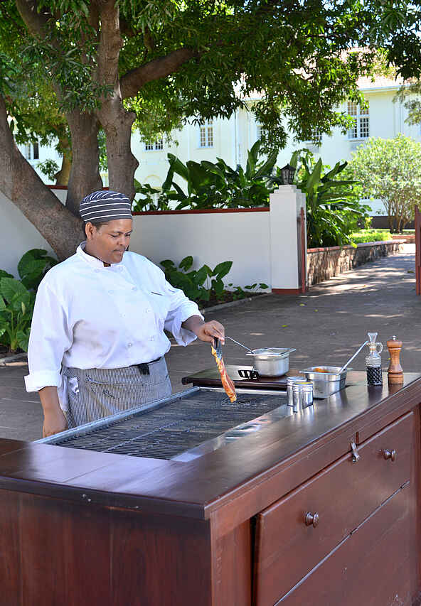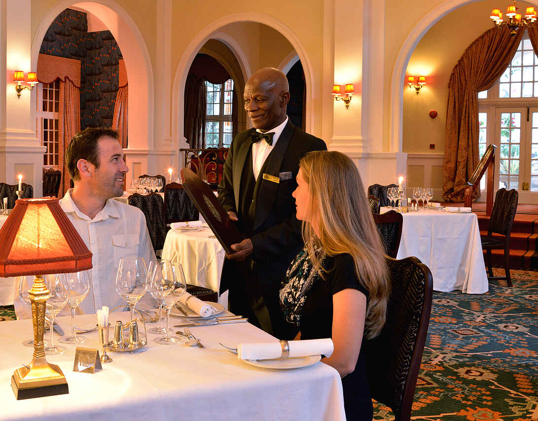 Im Allgemeinen auf der Basis von Bed and Breakfast, die weiteren Mahlzeiten und alle Getränke kosten extra und können in einem der 3 Restaurants eingenommen werden: Die legere Jungle Junction mit Boma und Musikprogramm (Frühstück, Lunch, Dinner), die Stanley Terrace mit atemberaubender Aussicht (High Tea und leichte Mahlzeiten) auf die Victoria Falls Bridge und der elegante Livingstone Room für ein formales 7-Gänge-Dinner à la carte und einer großen Weinkarte. Die Gäste speisen an individuellen Tischen unter freiem Himmel oder unter Dach.