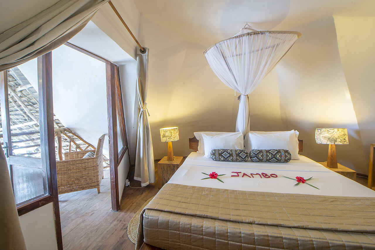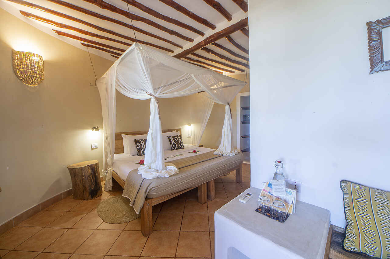 Die 28 Zimmer des Villa Kiva Boutique Hotels sind im sansibarischen Stil eingerichtet und verfügen über Holzbalken sowie traditionelle Designelemente. Jedes Zimmer hat eine private Veranda oder einen Balkon mit Blick auf den Garten oder das Meer. Zu den Annehmlichkeiten gehören Klimaanlage, Deckenventilator, Wlan, Moskitonetz, kleiner Kühlschrank, Tee- und Kaffeezubereiter sowie ein Safe. Die Badezimmer sind mit Dusche, Toilette und Haartrockner ausgestattet. Für Familien stehen spezielle Familienzimmer mit Verbindungstüren zur Verfügung, einige Zimmer haben ausreichen Platz für ein zusätzliches Baby-Bett, Zustellbett oder eine Schlafcouch.