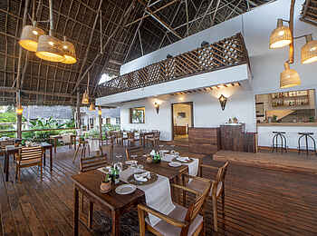 Das Villa Kiva Boutique Hotel serviert eine Mischung aus swahilischen und europäischen Gerichten mit italienischem Einfluss. Frischer Fisch und Meeresfrüchte, direkt vom nahegelegenen Fischmarkt in Matemwe, findet man häufig auf der Speisekarte. Das Frühstücksbuffet sowie das Mittagessen, bestehend aus Pizza, Sandwiches und frischem Fisch und Meeresfrüchten, wird auf der Terrasse mit Blick auf den Ozean genossen. Das Bustani Restaurant verspricht abends ein internationales À-la-carte-Menü mit swahilischen Einflüssen in eleganter Atmosphäre. Passend hierzu verfügt das Restaurant über eine große Auswahl an südafrikanischen, italienischen und spanischen Weinen. Die Masai Bar bietet frischen Säfte, Cocktails, Biere sowie internationale und lokale Spirituosen an.