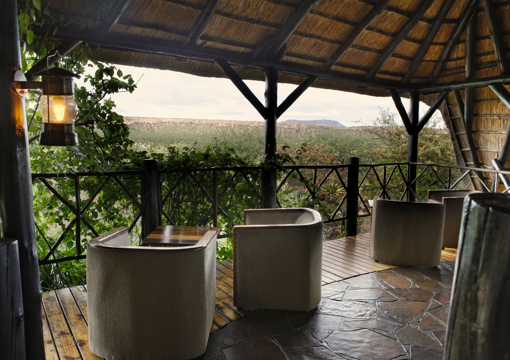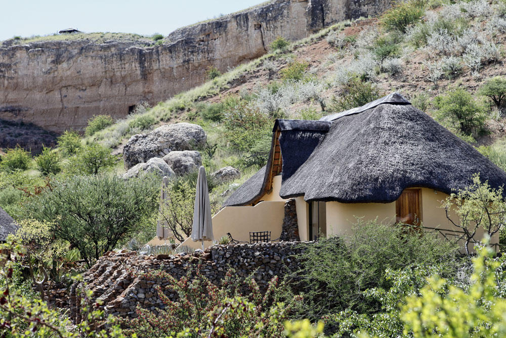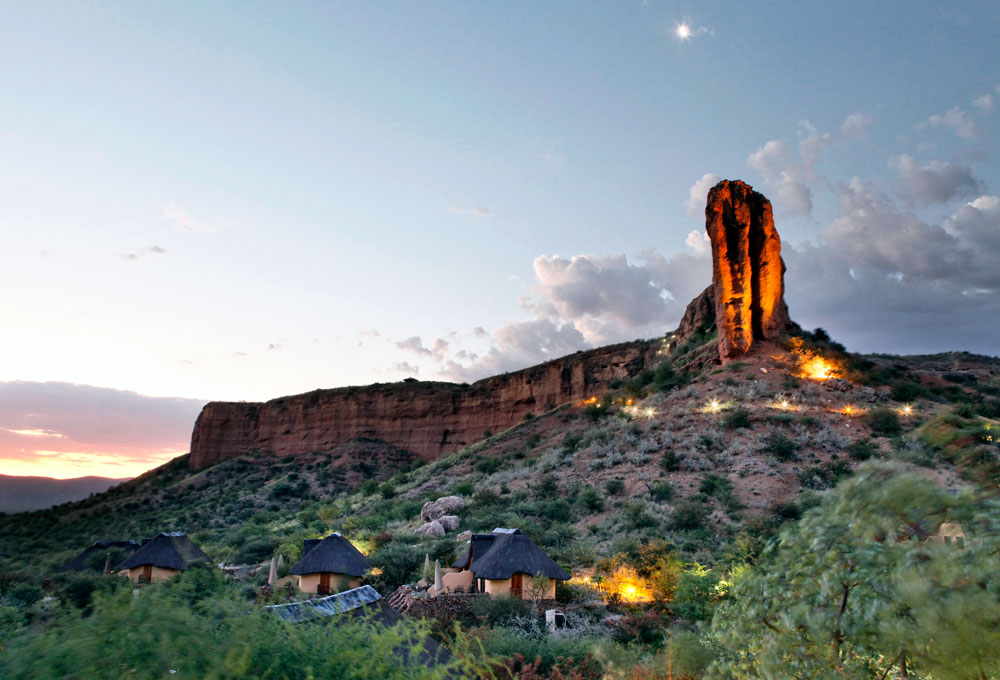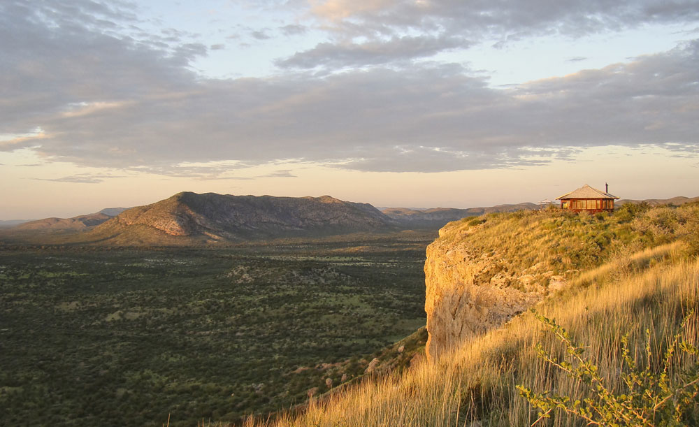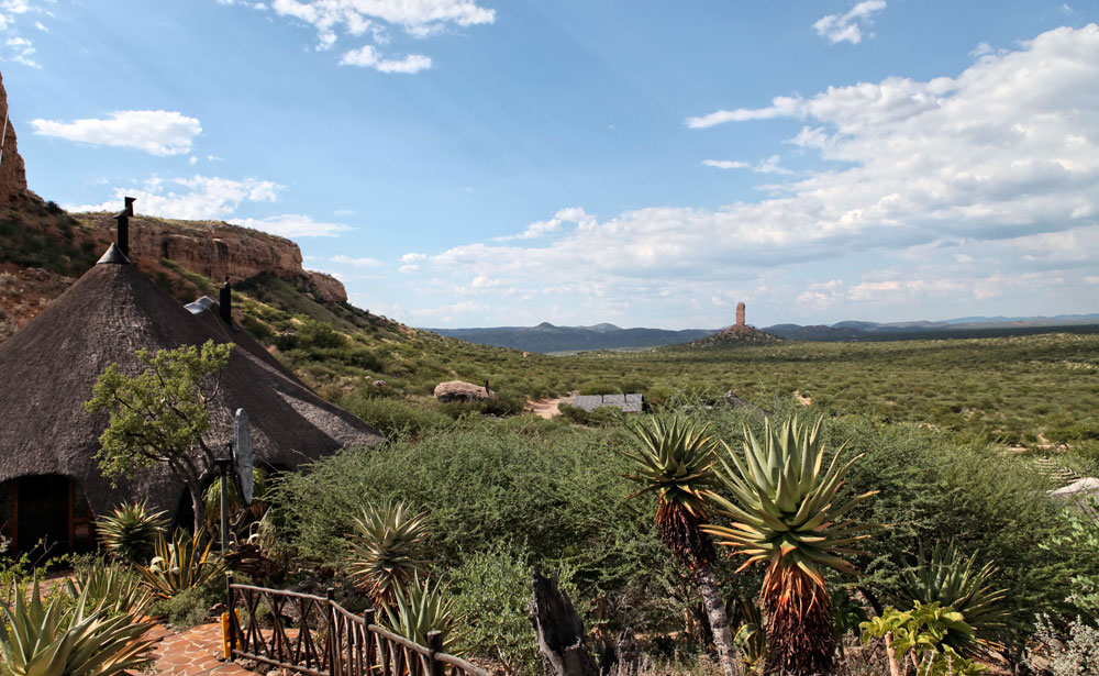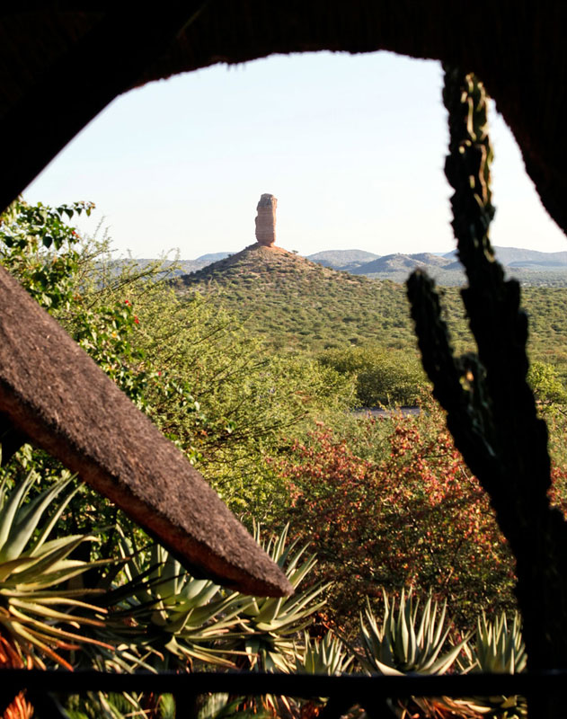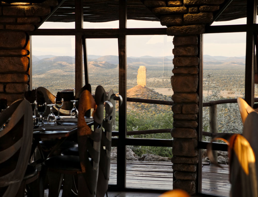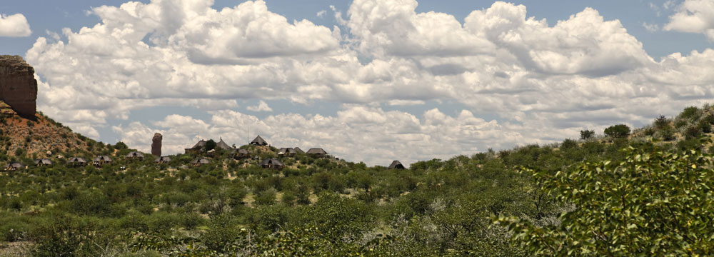 Die Vingerklip Lodge besticht durch ihre Lage am Fuße der Tafelberge. Sie bietet einen fantastischen Panorama-Blick auf die Ugab-Terrassen und verfügt über ein 1600 ha großes Privatreservat, inklusive beleuchteter Wasserstellen.