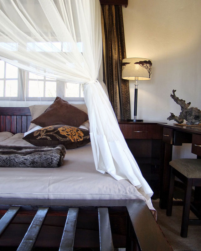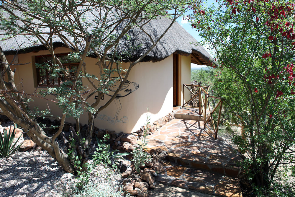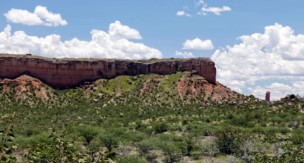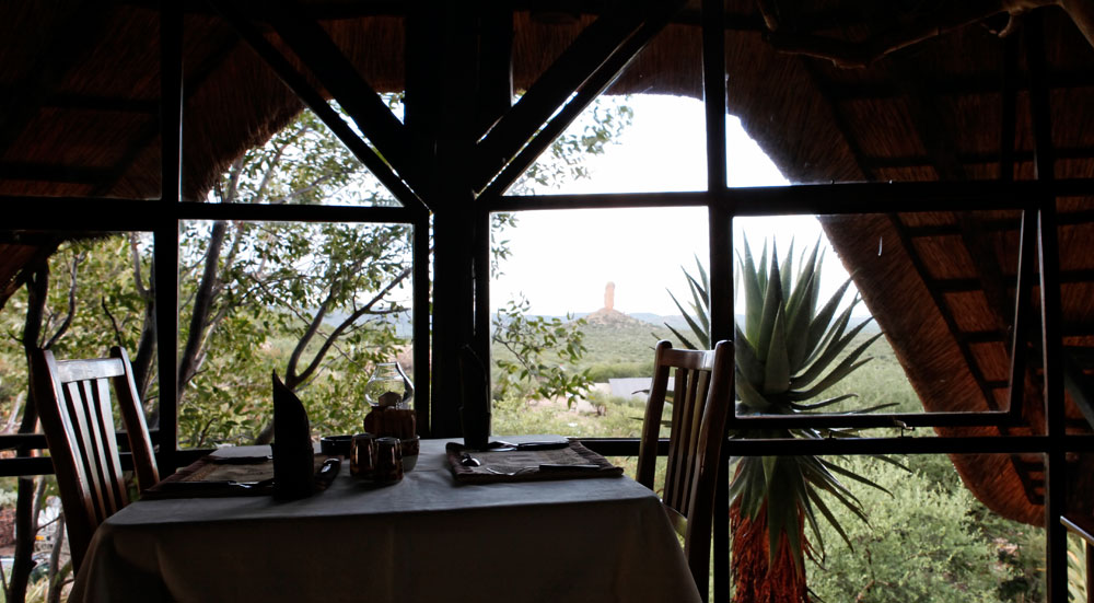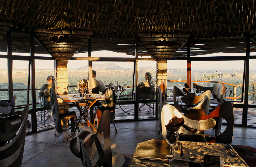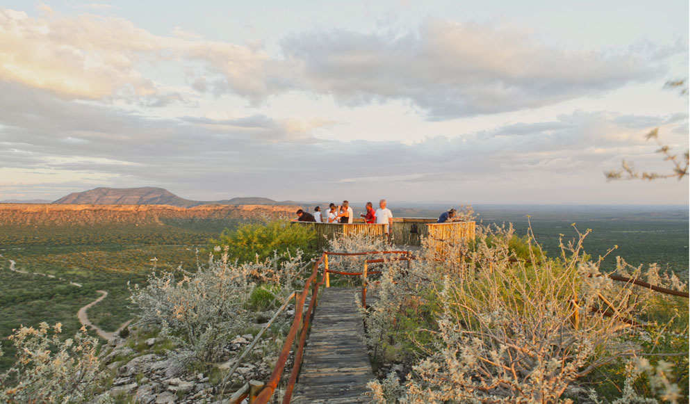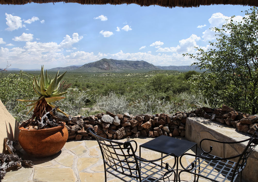Die Vingerklip Lodge besticht durch ihre Lage am Fuße der Tafelberge. Sie bietet einen fantastischen Panorama-Blick auf die Ugab-Terrassen und verfügt über ein 1600 ha großes Privatreservat, inklusive beleuchteter Wasserstellen.