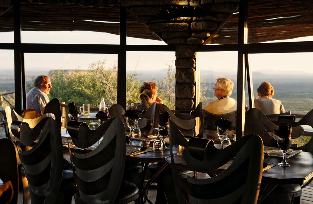 Üblicherweise Halbpension, Gourmetküche, lokal gebrautes Bier. Es besteht die Möglichkeit im "Eagle´s Nest"-Restaurant auf dem Gipfel der Tafelberge das Dinner einzunehmen.