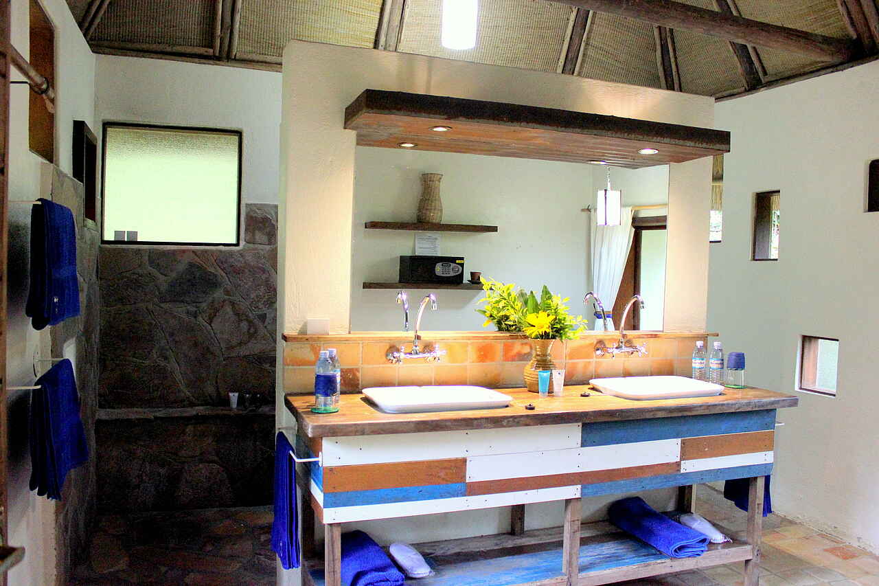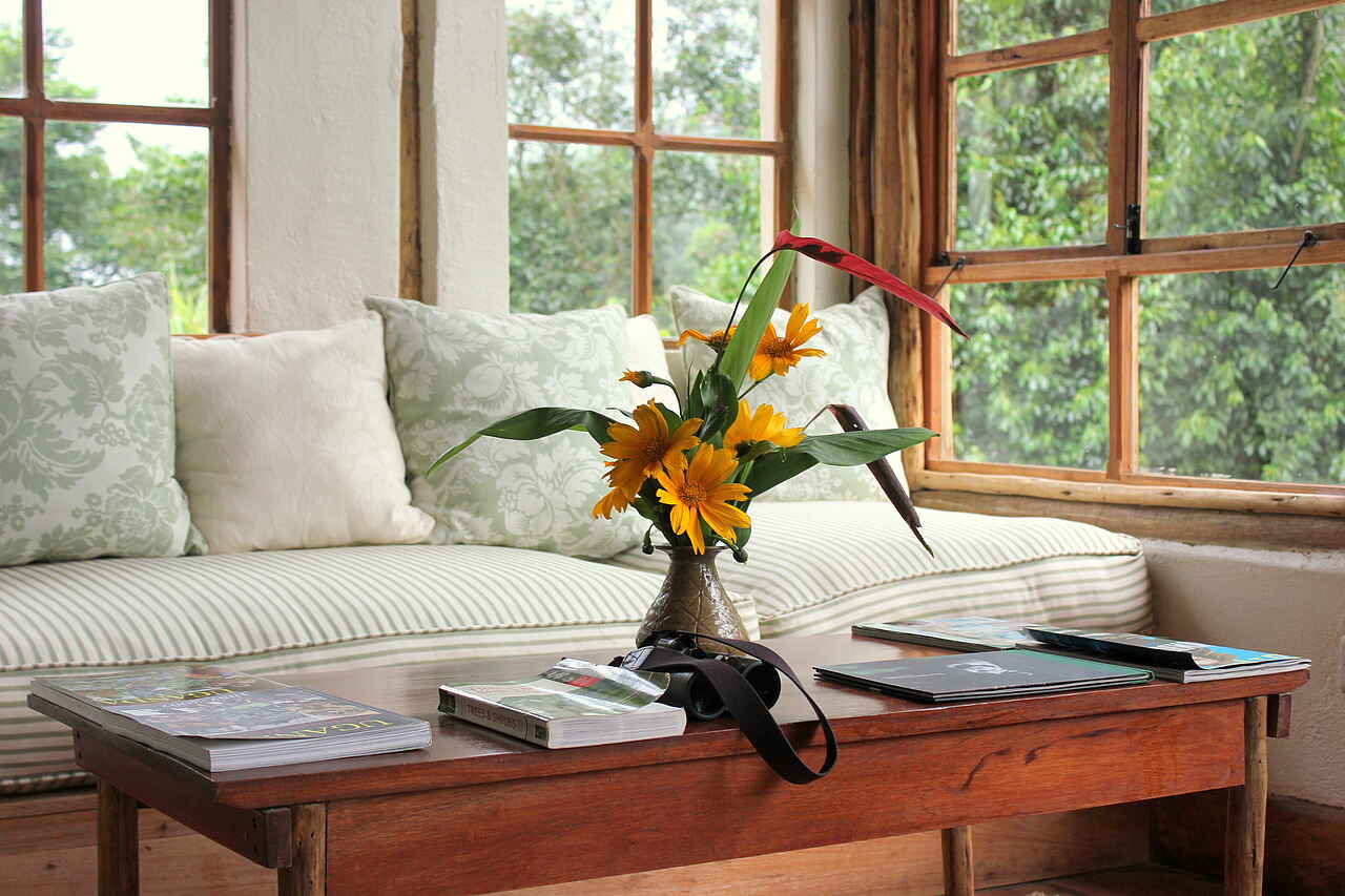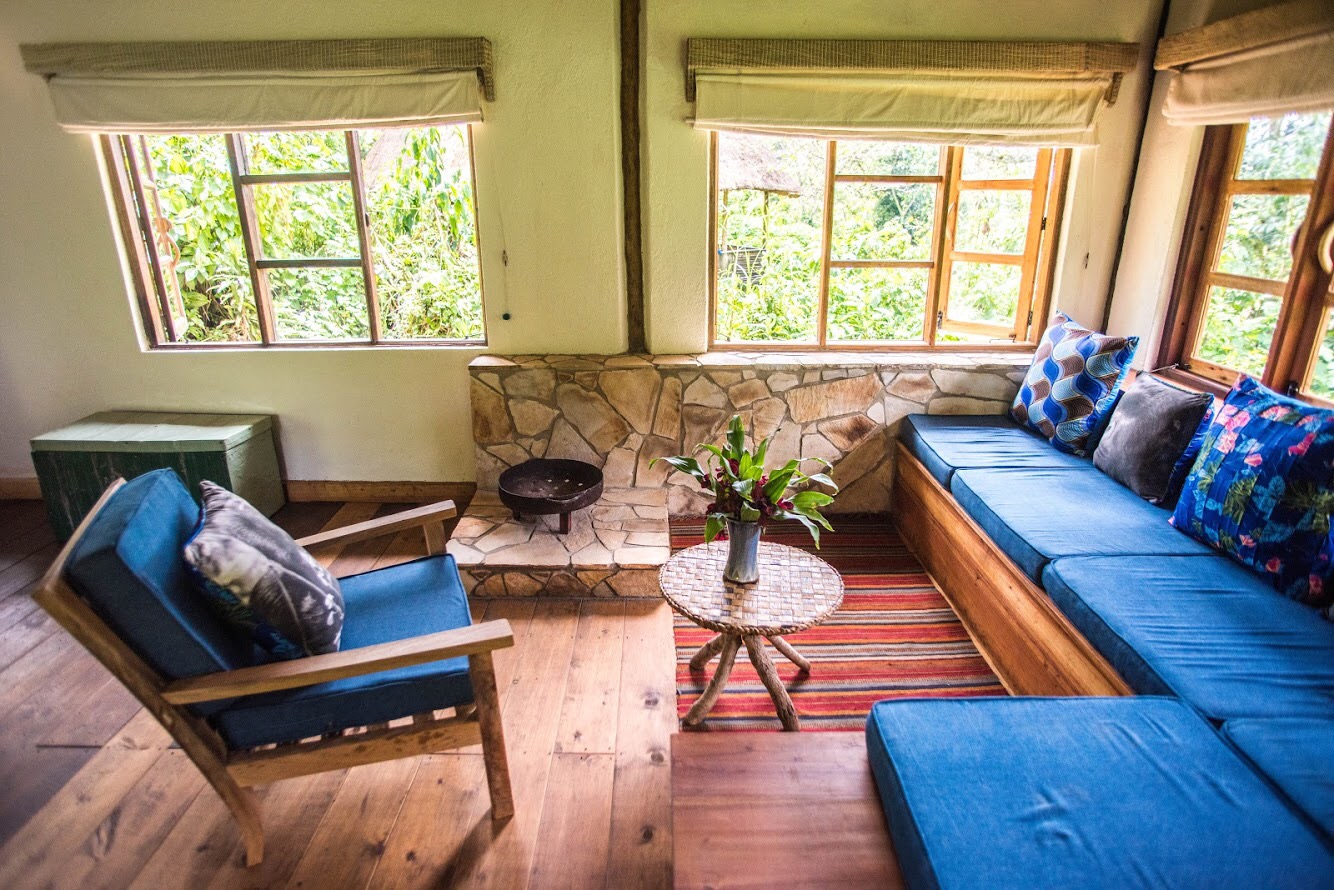 Das lichtdurchströmte und stilvoll eingerichte Hauptgebäude ist das Herzstück der Lodge. Hier finden sich Lounge, Restaurant und Bar. Der Hauptwohnbereich mit zentralen Kamin dient als Anlaufpunkt für Gäste, um zu entspannen und die Erlebnisse ihres Gorilla Trackings Revue passieren lassen. Zahlreiche Sitzgelegenheiten laden zum Relaxen ein. Bücher über die Geschichte sowie Tier- und Vogelwelt Ugandas liegen zum Lesen und Anschauen bereit. Die große Terrasse vor dem Hauptgebäude mit Blick auf den Wald ist ein großartiger Ort, um Affen und Vögel zu beobachten. WLAN und Ladestation für elektronische Geräte sind am zentralen Bereich vorhanden. Ein Souvenirshop befindet sich Nahe des Haupthauses.