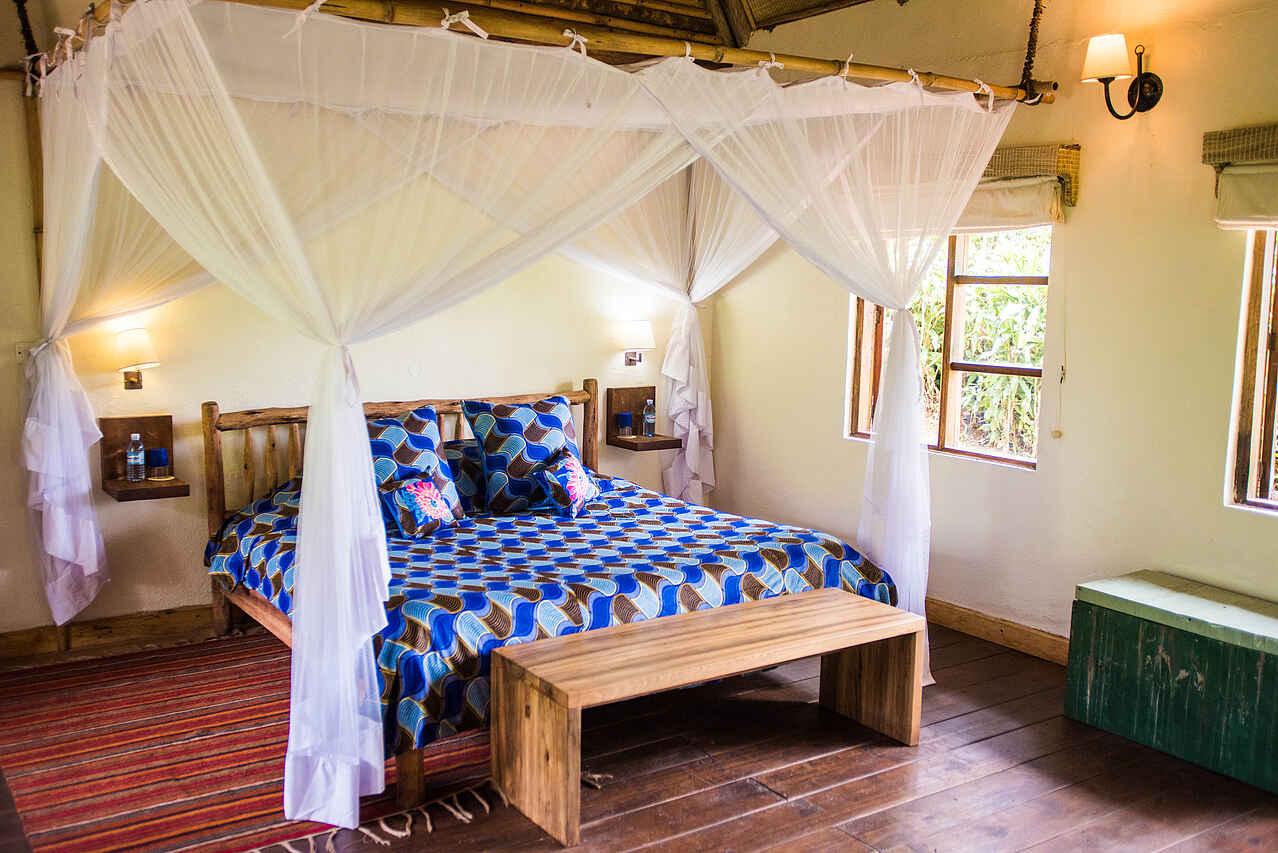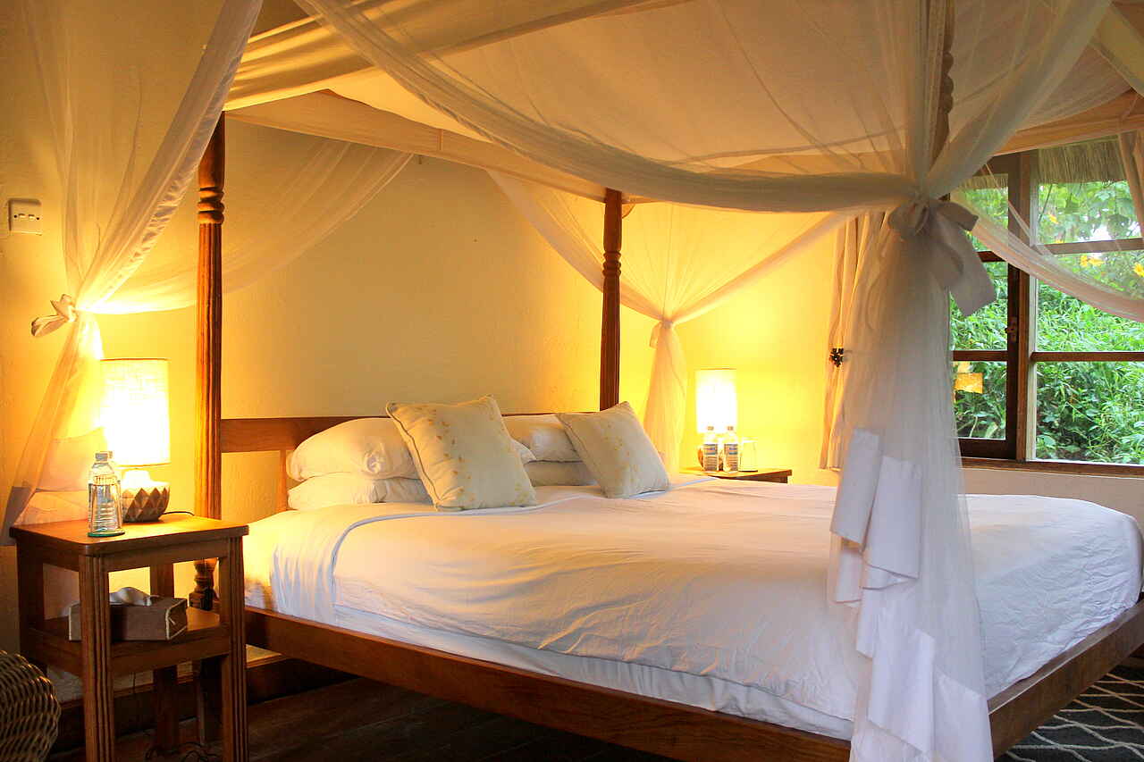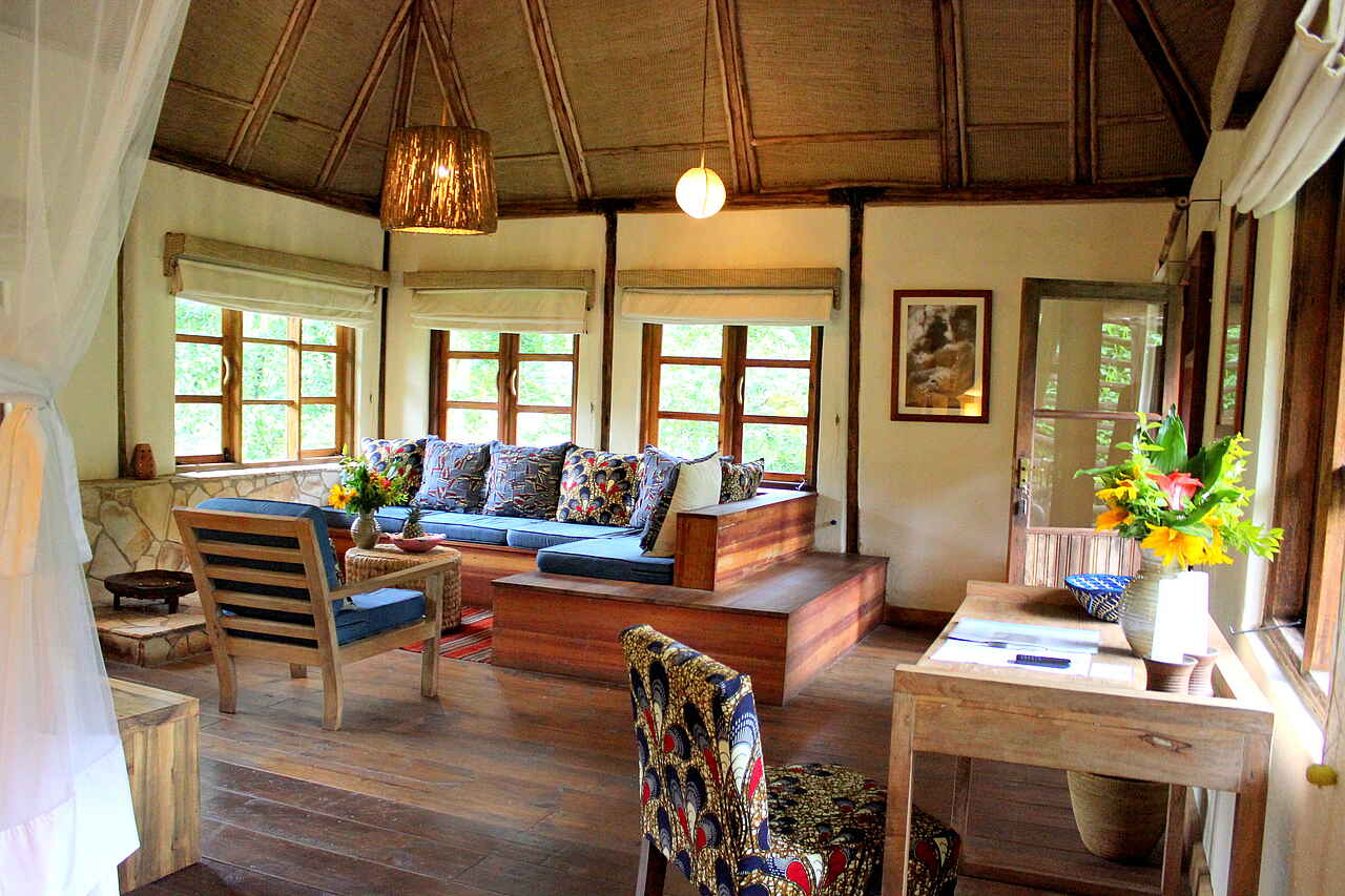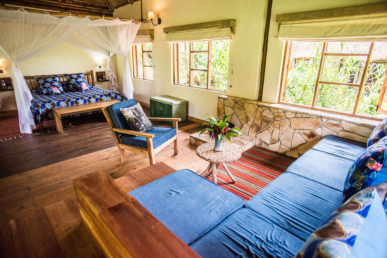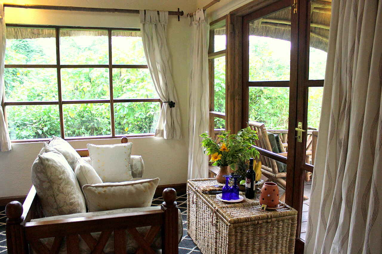 Die 8 komfortablen Cottages bieten Ruhe und Privatsphäre. Aus lokalen Materialen erbaut und stilvoll eingerichtet sind sie Rückzugsort nach einem aktiven Tag. Die geräumigen Badezimmer sind mit Doppelwaschbecken, einem großen Spiegel und Dusche mit fließend Warm- und Kaltwasser ausgestattet. Jede Gästeunterkunft verfügt über eine Sitzgelegenheit im Zimmer und eine private Terrasse mit Blick auf den Nationalpark. Moskitonetze und ein Safe sind ebenfalls vorhanden. Bei Ankunft erwarten den Gast ein Obstkorb und eine Flasce Wein als Willkommensgeschenk. Wäscheservice ist inklusive. Ebenfalls bereitgestellt wird ein Mobiltelefon, mit dem man Rezeption und Butler stets erreichen kann. Das Honeymoon-Cottage „Mama Bwindi“ verfügt darüber hinaus über einen größeren Loungebereich mit offener Feuerstelle.