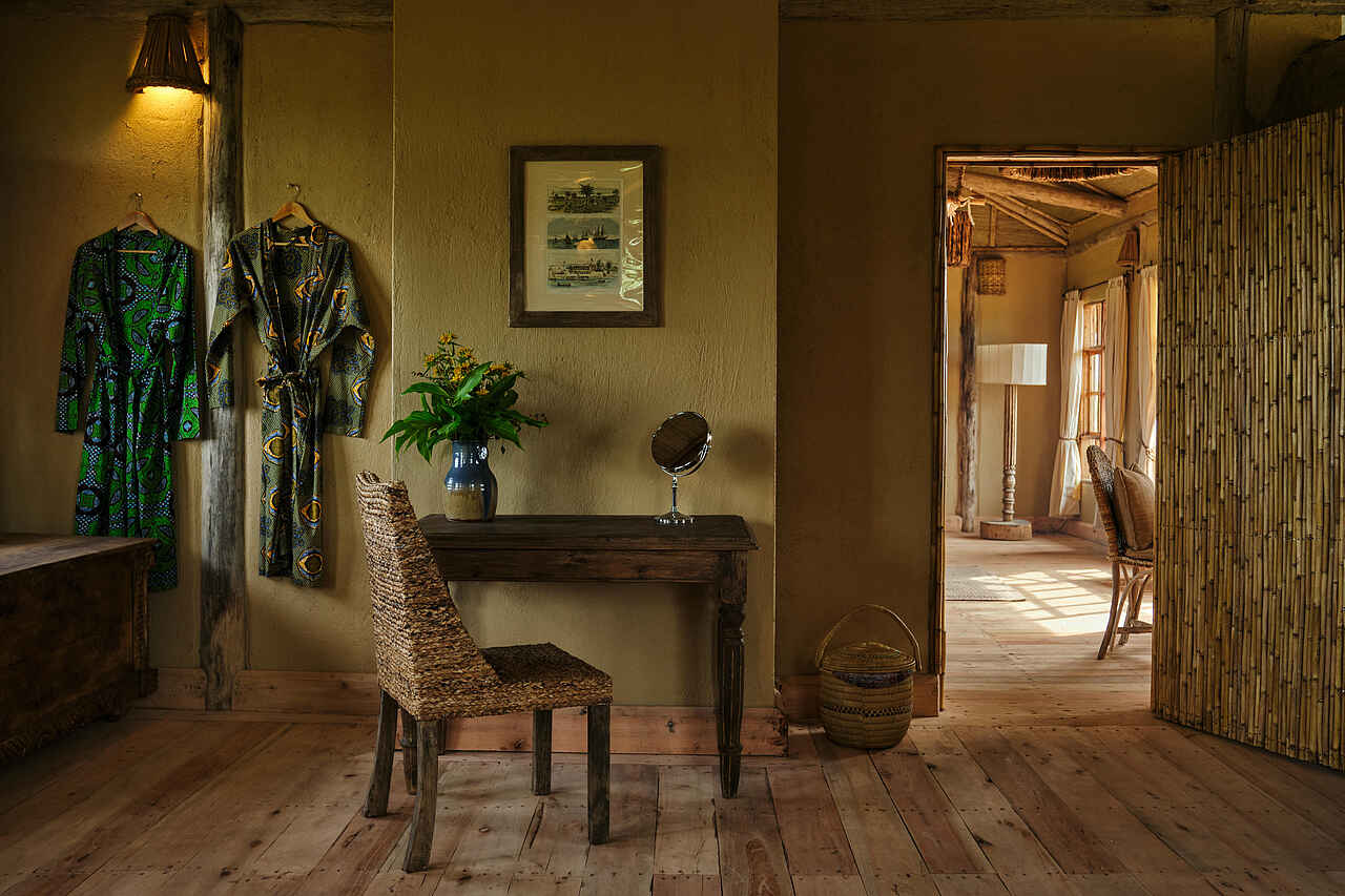 Die Volcanoes Kibale Lodge bietet acht individuell gestaltete Bandas. Jede Banda verbindet natürliche Materialien mit modernem Komfort und wurde mit viel Liebe zum Detail errichtet. Auf der privaten Terrasse genießen Gäste den Ausblick auf die imposanten Rwenzori-Berge oder die sanften Hügel der Fort-Portal-Region. Im Inneren sorgen gemütliche Betten mit Moskitonetzen, eine stilvolle Sitzecke und praktische Ablageflächen für ein behagliches Wohngefühl. Die großzügigen En-suite-Badezimmer sind mit Spültoilette, Doppelwaschbecken sowie Innen- und Außendusche mit Warm- und Kaltwasser ausgestattet. Alle Gäste genießen den Service eines persönlichen Butlers, der sich aufmerksam um ihre Wünsche kümmert.