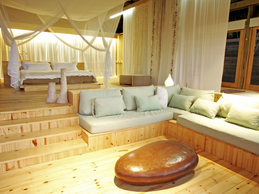 Zur Ausstattung gehören Ventilator, Minibar, Kaffee- und Teezubereitungsmöglichkeiten, Safe, Ferngläser und Regenschirme. Die En-suite-Badezimmer bieten Doppelwaschbecken, eine innenliegende Dusche sowie eine zusätzliche Außendusche. Haartrockner, Bademäntel und Pflegeprodukte sind vorhanden. Im North Camp stehen zusätzlich zwei Familiensuiten mit jeweils zwei separaten Schlafzimmern zur Verfügung, die sich eine gemeinsame Veranda und einen privaten Plunge Pool teilen.