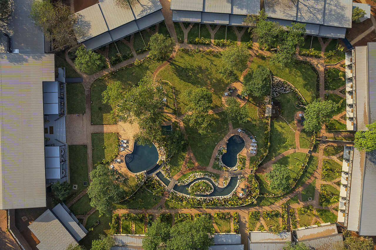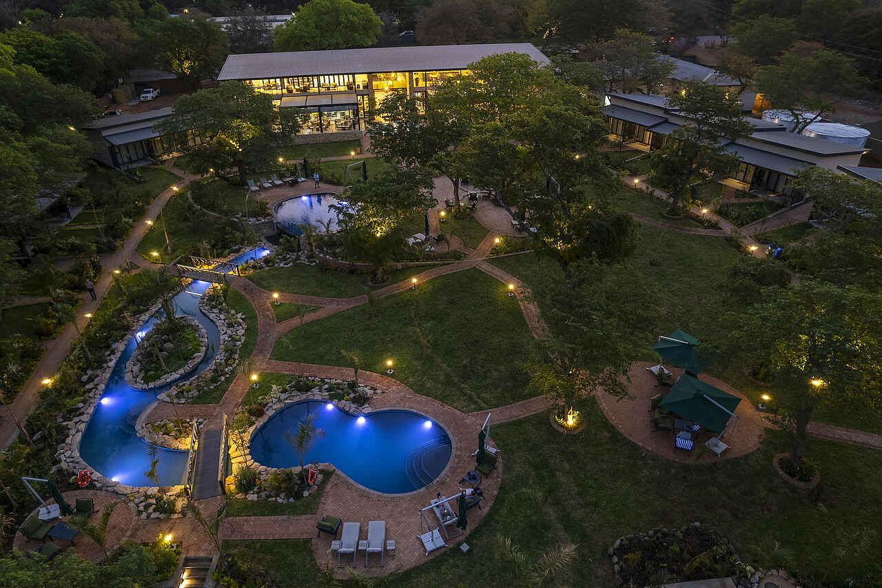 Die Waterfalls Lodge befindet sich in Simbabwe, nahe den berühmten Victoriafällen und unweit des Stadtzentrums von der kleinen Stadt Victoria Falls. Die Lage eignet sich ideal für Reisende, die Natur, Safari und Kultur flexibel miteinander verbinden möchten. Die Lodge ist umgeben von tropischen Gärten und kombiniert modernen Komfort mit entspannter Atmosphäre. Ein Pool, ein kleiner Spa-Bereich und das offene Restaurant sorgen für Erholung zwischen Ausflügen zu den Wasserfällen, Bootsfahrten auf dem Sambesi oder Pirschfahrten im Zambezi Nationalpark.