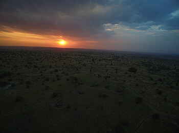 Per Fly and Transfer. Der nächstliegende Flughafen ist der Kogatende Airstrip, von dem die Gäste mit dem Auto ins Camp gelangen.