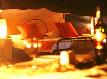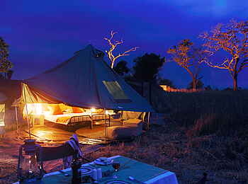 Das Camp besitzt vier private Speisebereiche, die jeweils einen Butler und einen unterschiedlichen Zeltaufbau besitzen, der auf die jeweilige Besuchergruppe zugeschnitten ist.