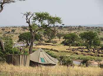Das Camp befindet sich etwa 20 Minuten vom Fluss Mara entfernt, am Rand der nördlichen Wildnis-Zone der Serengeti. Es sitzt auf einem Bergrücken und ist der nördlichen Serengeti zugewandt.