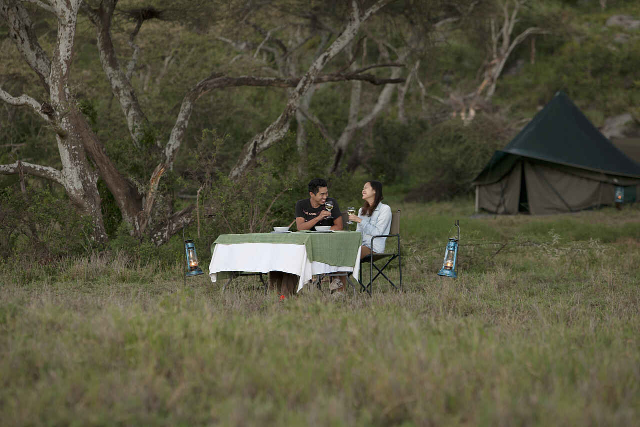Drei Mahlzeiten täglich: Frühstück, Mittagessen, 3-Gänge zum Abendessen, teilweise mit Tellerservice, teilweise Buffet, Kaffee oder Tee am Nachmittag, Lokale Getränke wie Bier oder Wein sind inbegriffen. Nach Möglichkeit wird für jede Gruppe von Reisenden ein eigener Platz unter freiem Himmel für die Mahlzeiten gefunden.
