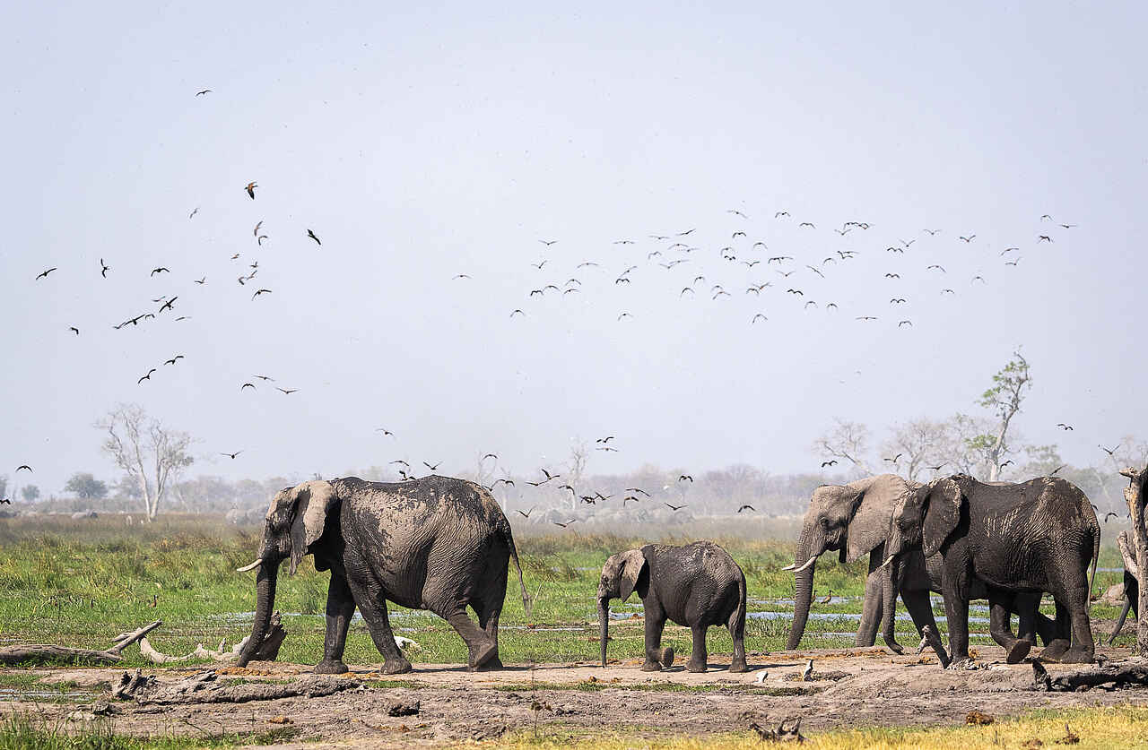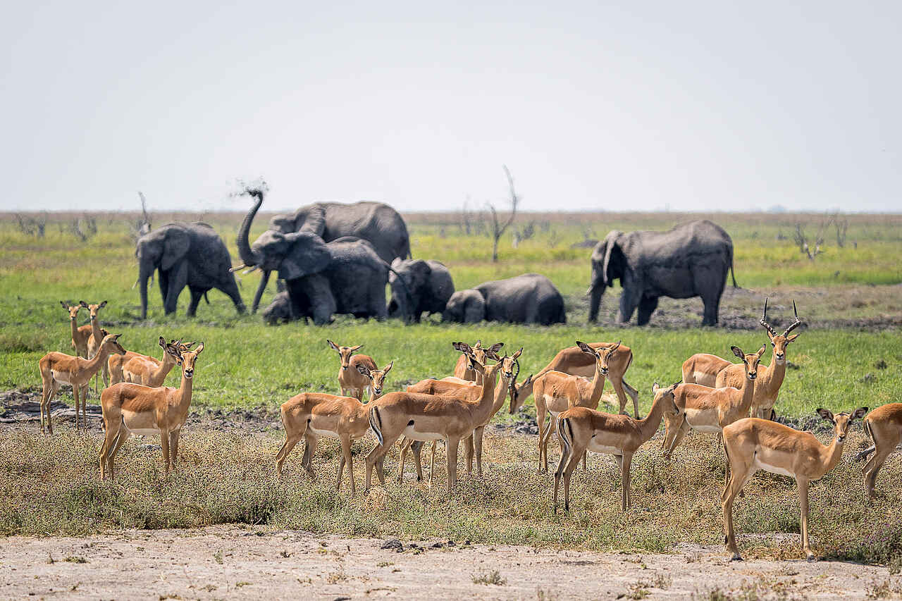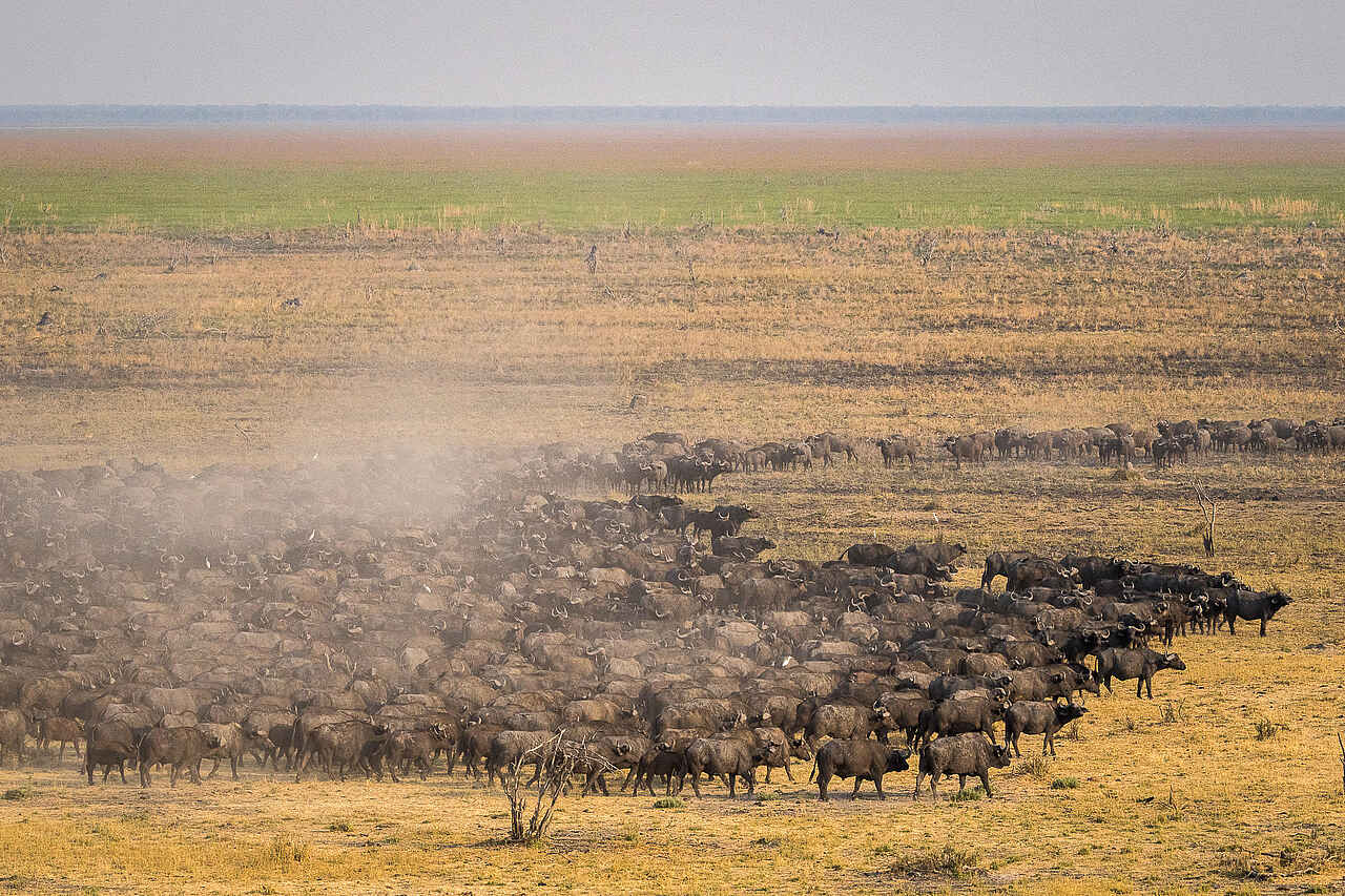 Das Ökosystem der Region ist einzigartig und beherbergt einige der beeindruckendsten Wildtierkonzentrationen auf dem Kontinent. Es ist ein Land der Giganten, gewaltige Herden durchstreifen die offenen Graslandschaften. Herden von Büffeln versammeln sich in Tausenden, eine Vielzahl von Elefanten pilgert hierher, Löwenrudel jagen regelmäßig bei Tageslicht, während andere Raubtiere wie Geparden, Wildhunde, Schleichkatzen, Löffelhunde, Schakale, afrikanische Wildkatzen und Hyänenclans um ihre Dominanz kämpfen. Neben den Sumpfgebieten, gibt es auch Mopane-Wälder im Osten, diese sind die Heimat von Leoparden und einer Vielzahl großer Vogelarten, darunter Bussarde, Eulen, Adler, Falken und Geier.