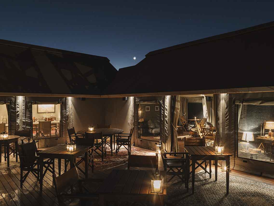 Max. 36 Gäste in 10 Zeltsuiten, davon 2 Familiensuiten